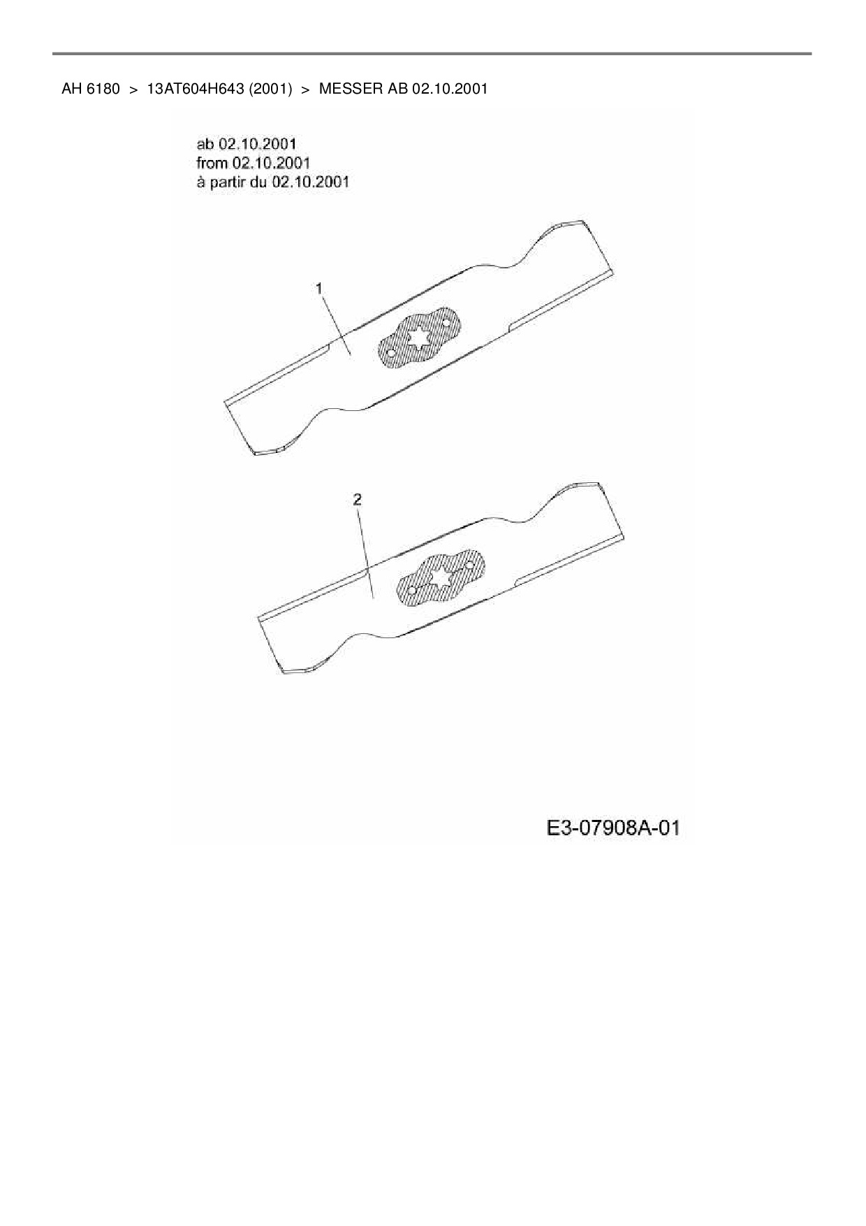 Ersatzteile für Rasentraktor Yard-Man AH 6180 aus der Zeichnung Messer ab 02.10.2001: