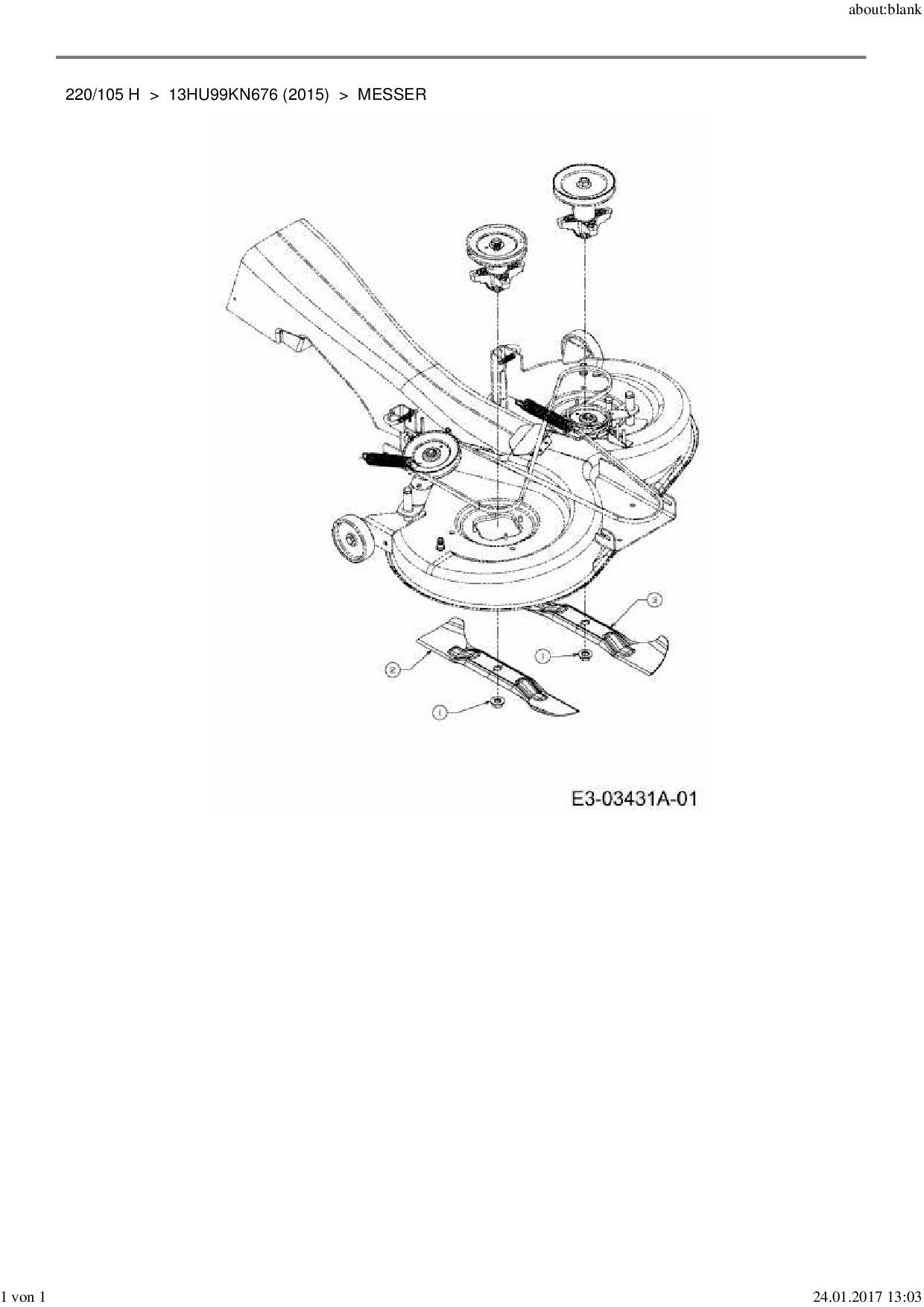 Ersatzteile für Rasentraktor MTD 220/105 H aus der Zeichnung Messer: