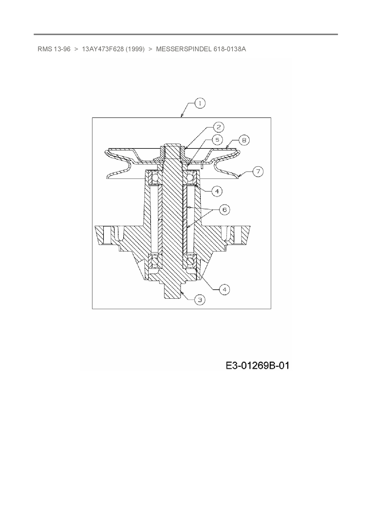 Ersatzteile für Rasentraktor Raiffeisen RMS 13-96 aus der Zeichnung Messerspindel 618-0138A: