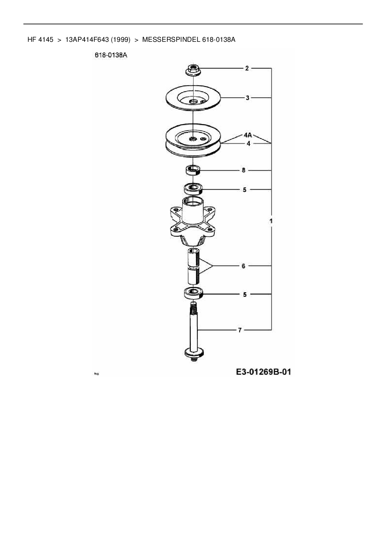 Download Ersatzteil-Zeichnung Yard-Man HF 4145 Zeichnung Messerspindel 618-0138A (PDF-Format)