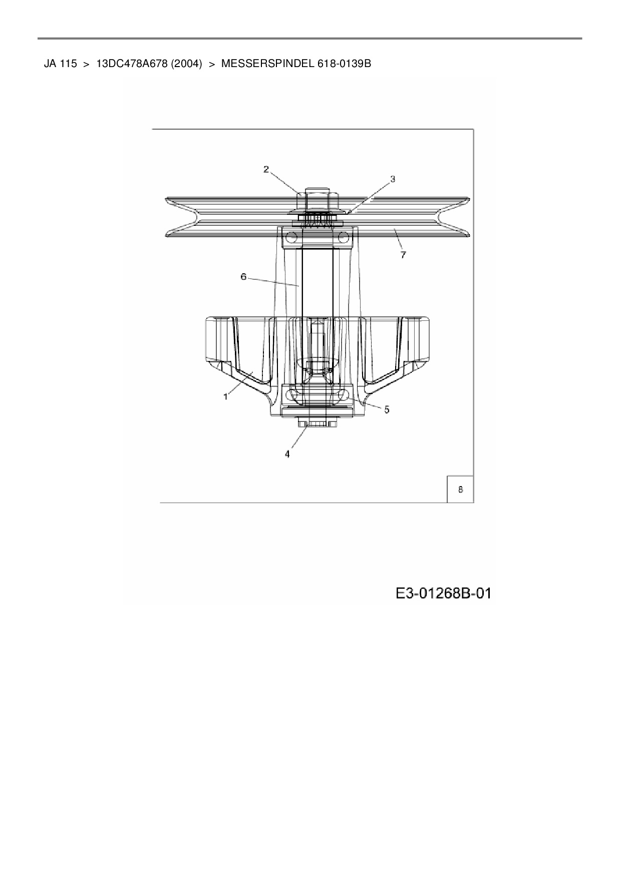 Ersatzteile für Rasentraktor MTD JA 115 aus der Zeichnung Messerspindel 618-0139B: