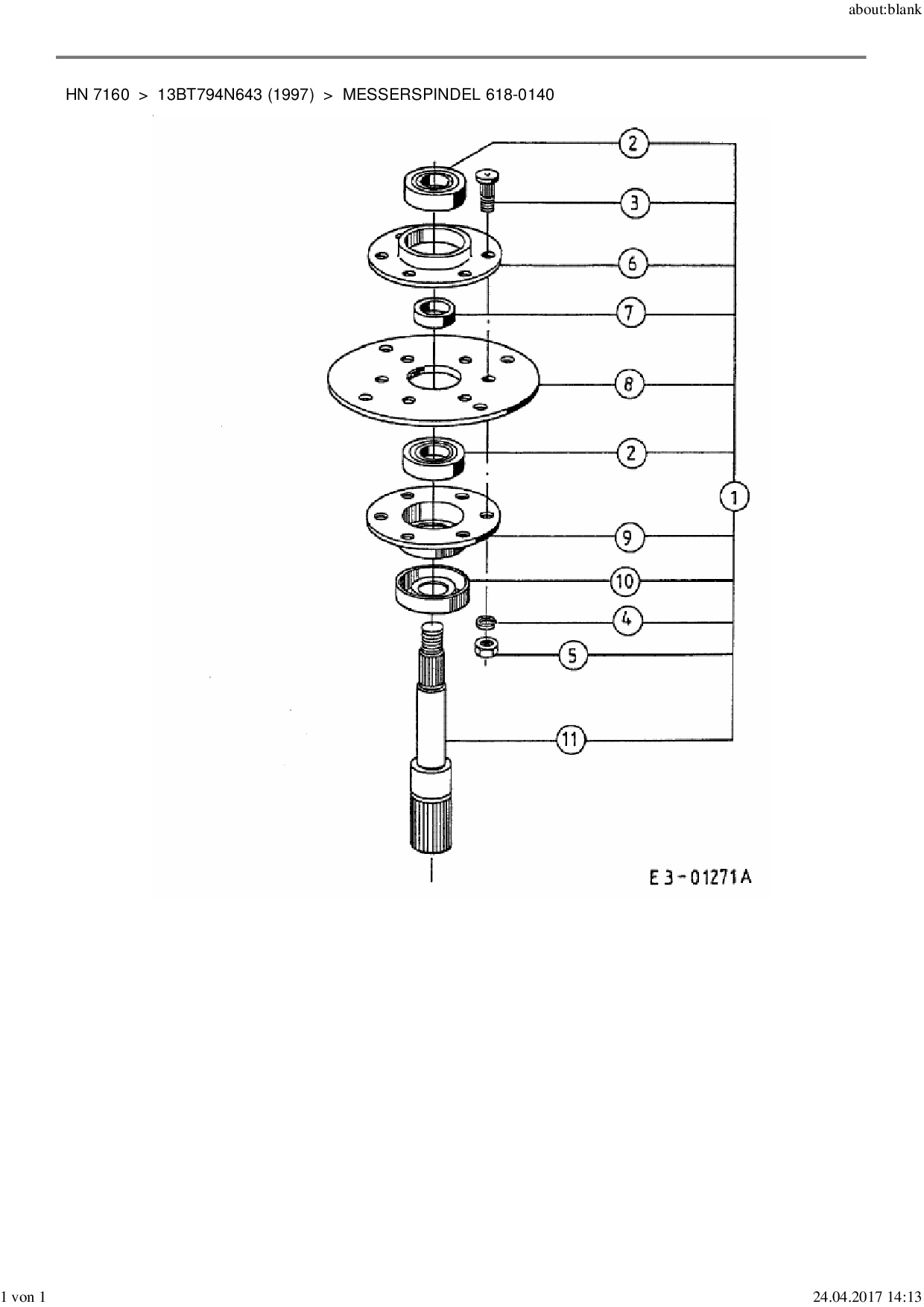 Ersatzteile für Rasentraktor Yard-Man HN 7160 aus der Zeichnung Messerspindel 618-0140: