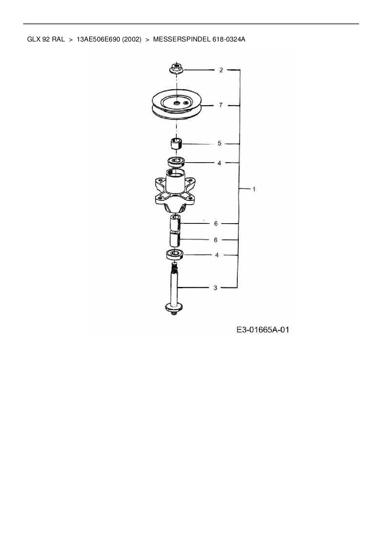 Ersatzteile für Rasentraktor Gutbrod GLX 92 RAL aus der Zeichnung Messerspindel 618-0324A: