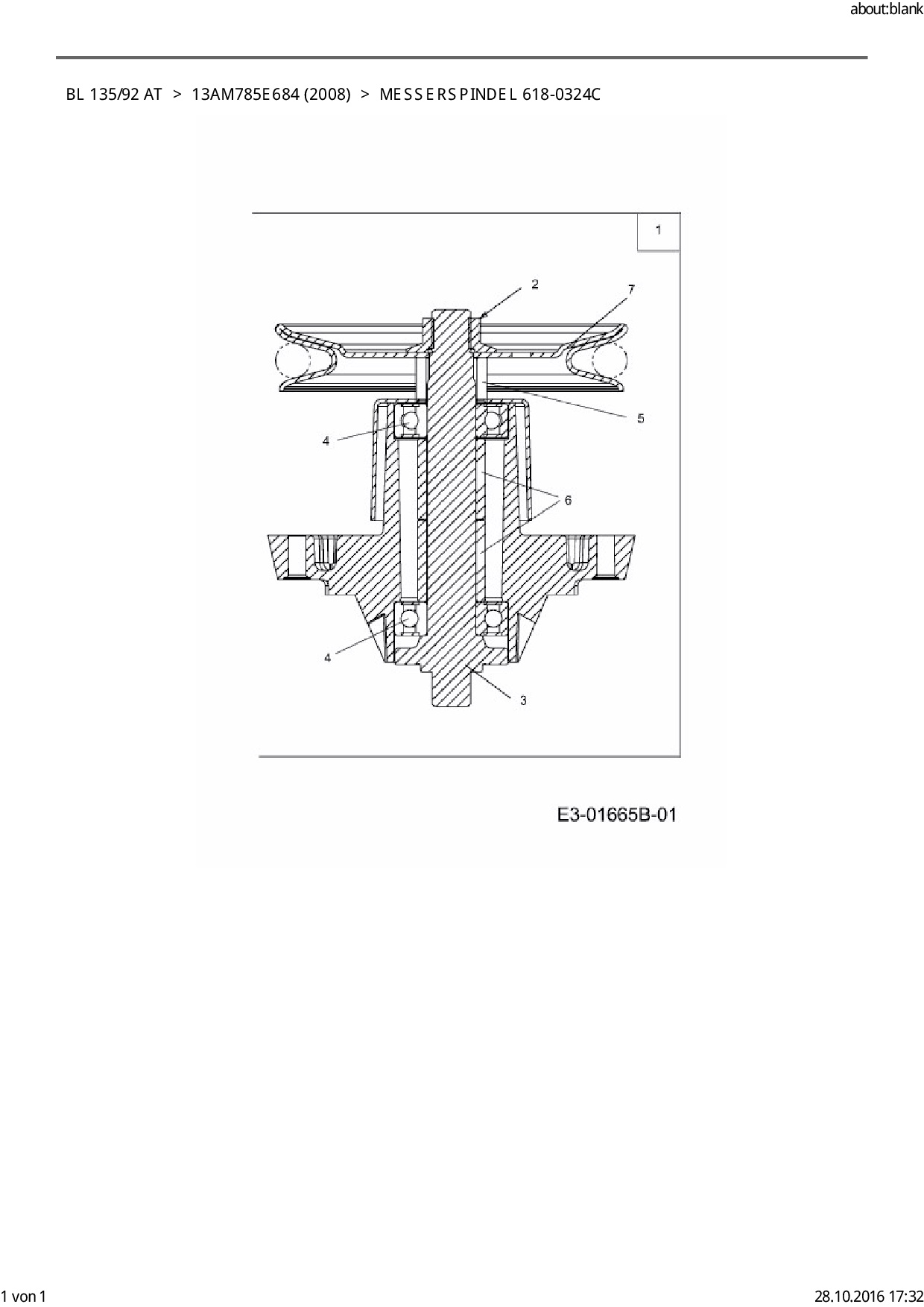 Ersatzteile für Rasentraktor Bolens BL 135/92 AT aus der Zeichnung Messerspindel 618-0324C: