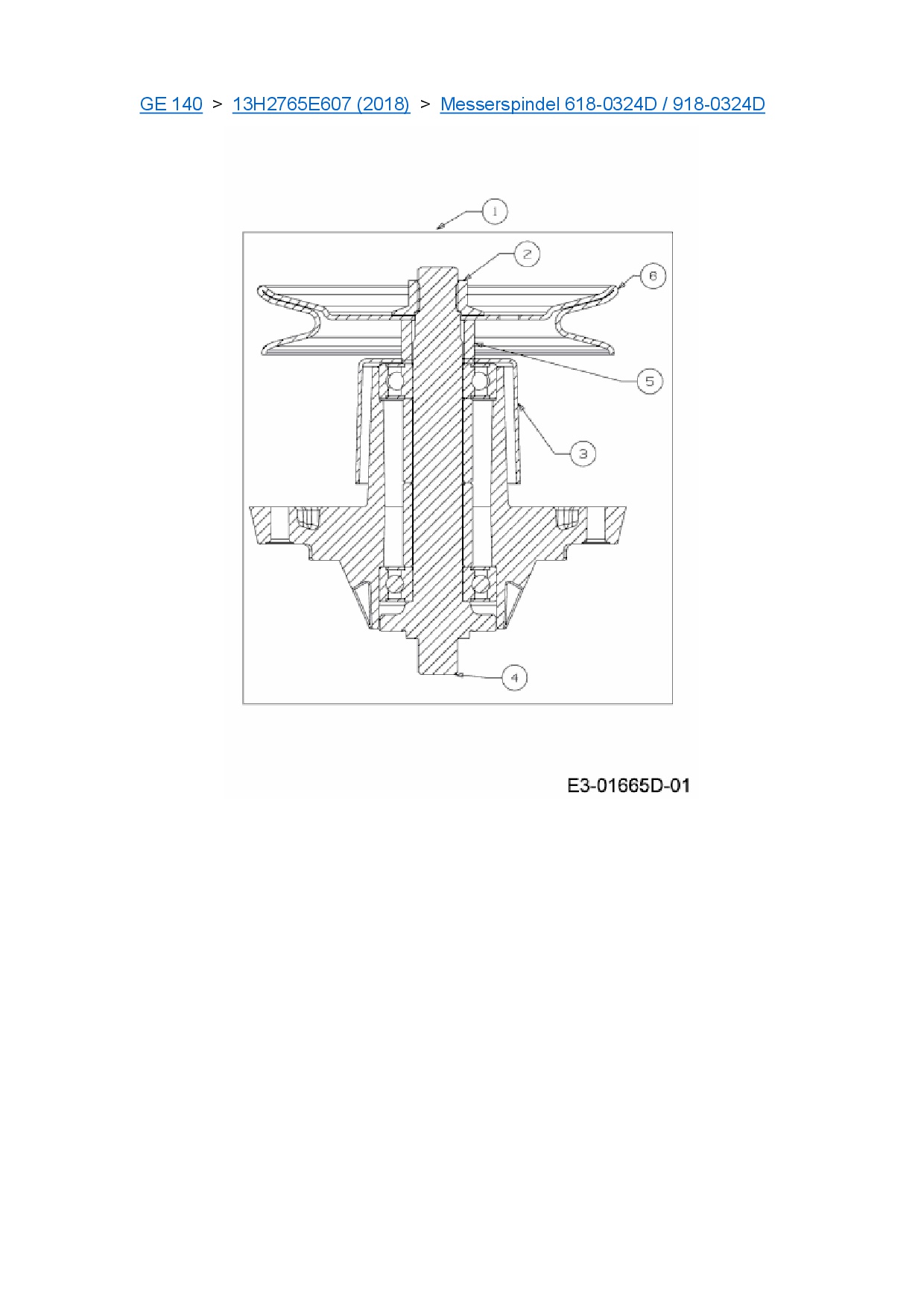 Ersatzteile für Rasentraktor Blisar GE 140 aus der Zeichnung Messerspindel 618-0324D / 918-0324D: