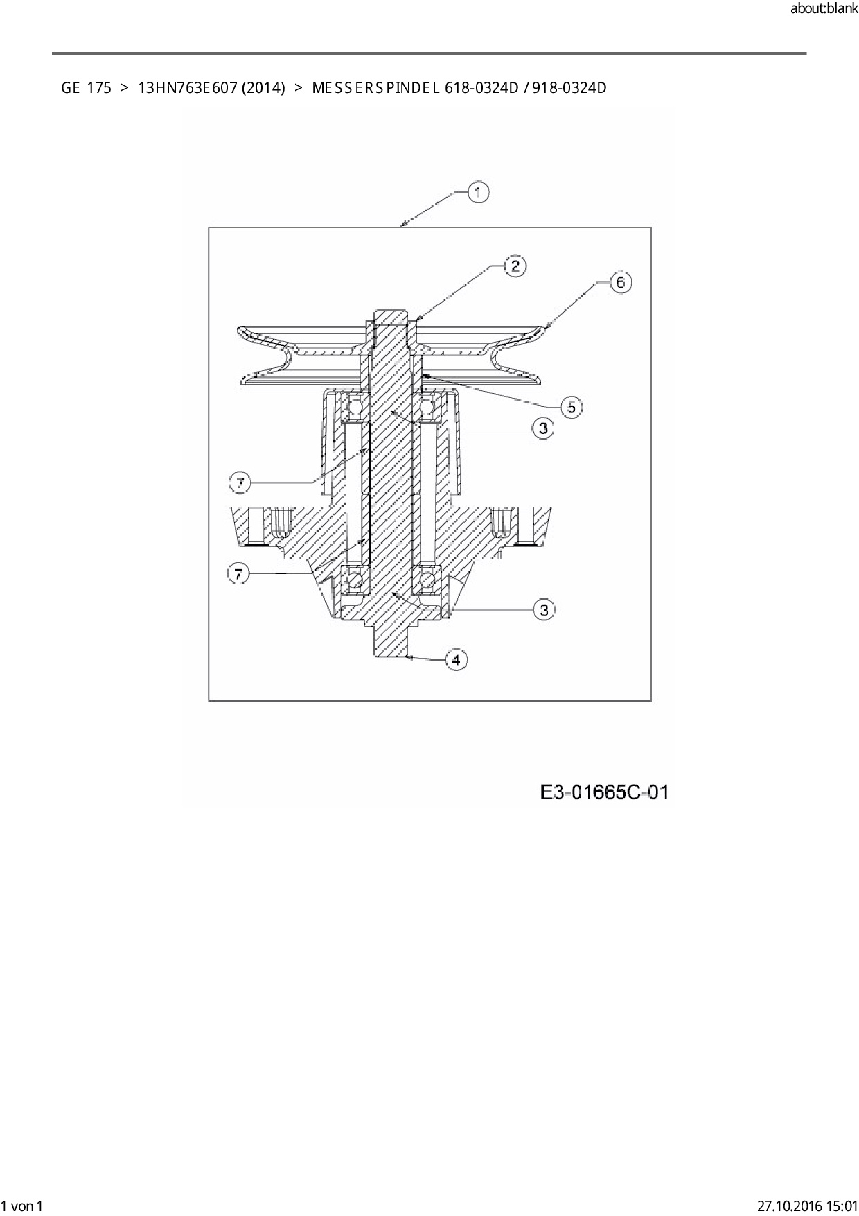Ersatzteile für Rasentraktor Blisar GE 175 aus der Zeichnung Messerspindel 618-0324D / 918-0324D: