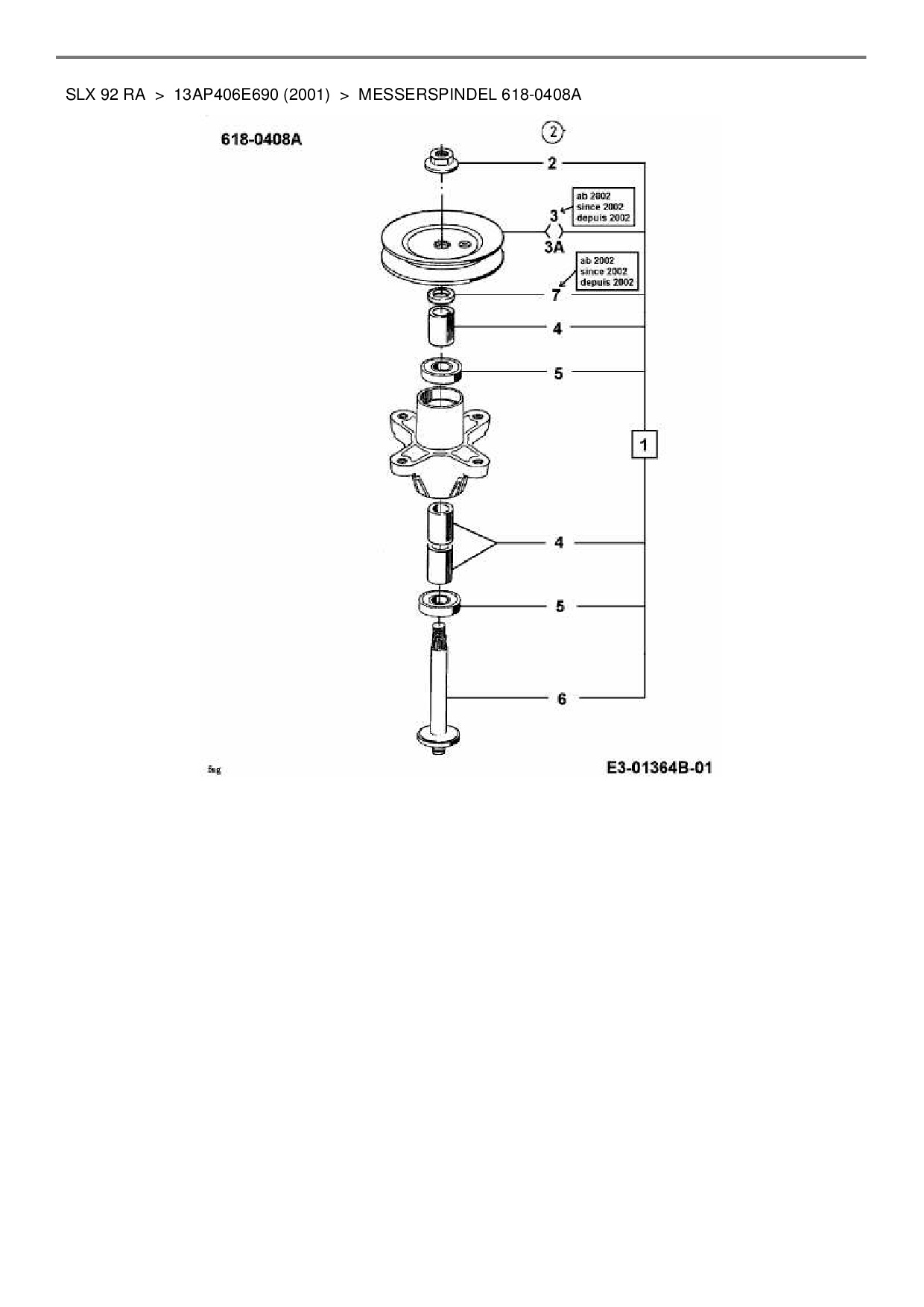 Ersatzteile für Rasentraktor Gutbrod SLX 92 RA aus der Zeichnung Messerspindel 618-0408A: