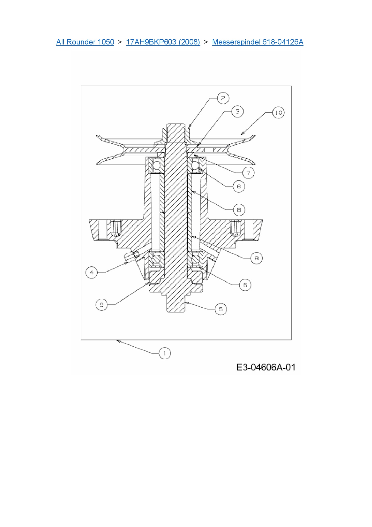 Download Ersatzteil-Zeichnung Cub Cadet All Rounder 1050 Zeichnung Messerspindel 618-04126A (PDF-Format)