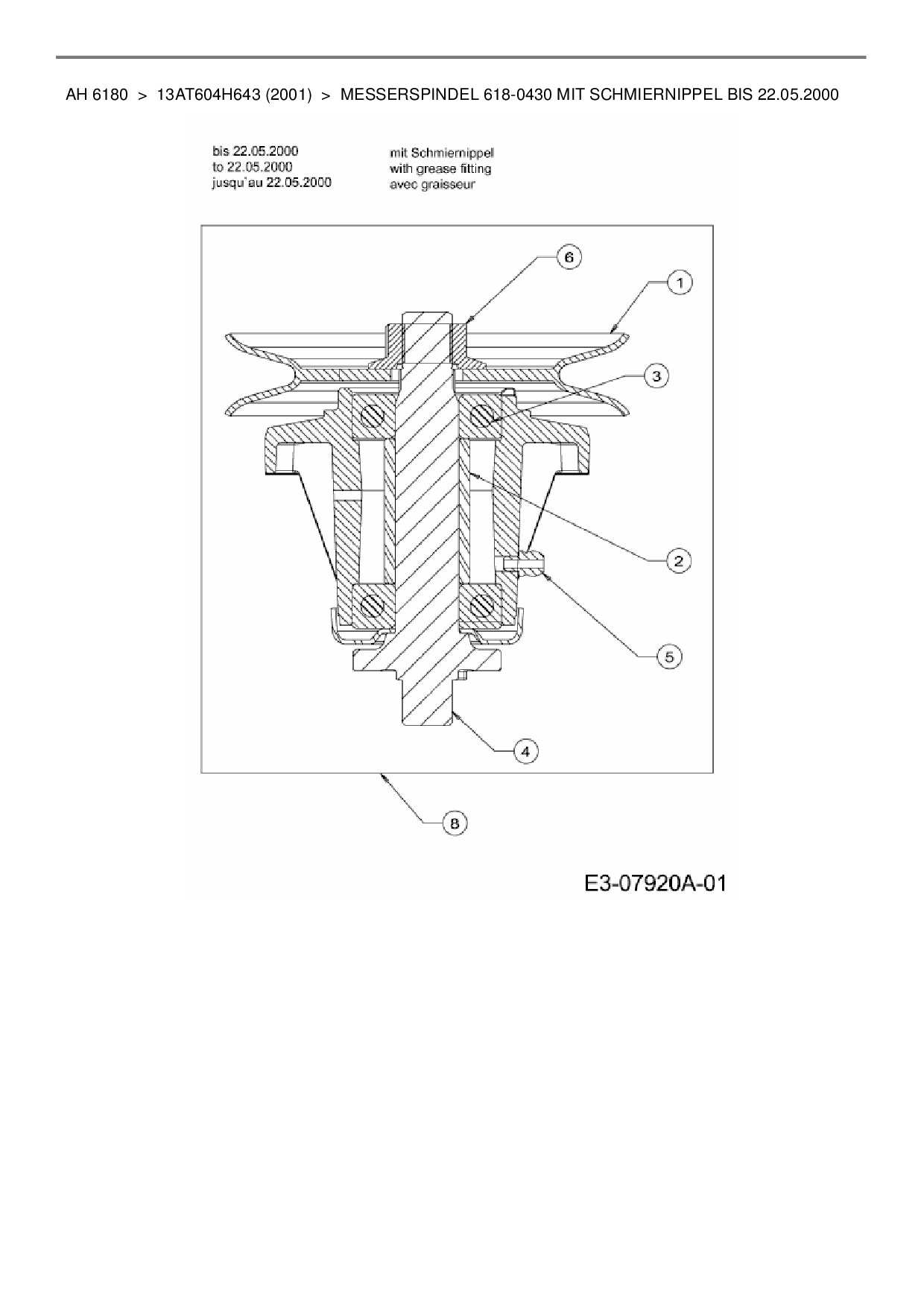 Ersatzteile für Rasentraktor Yard-Man AH 6180 aus der Zeichnung Messerspindel 618-0430 mit Schmiernippel bis 22.05.2000: