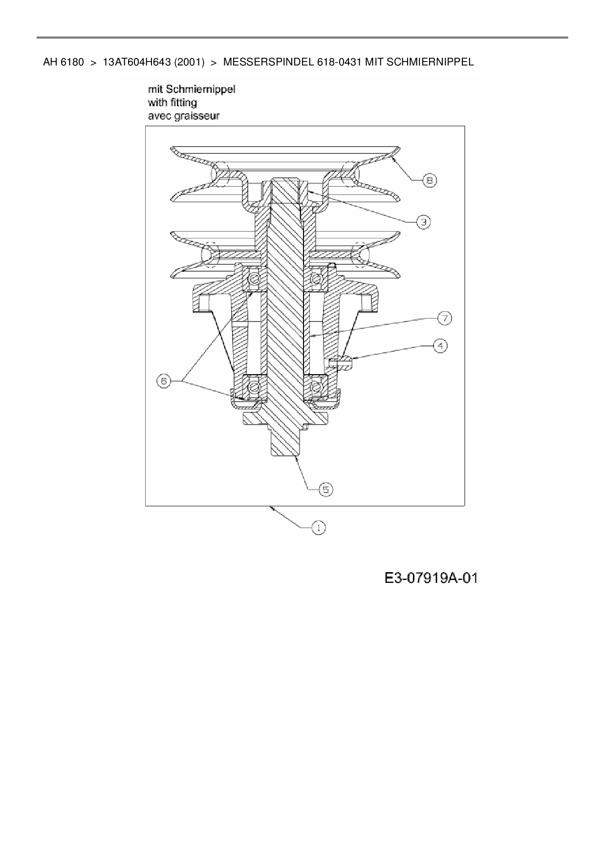 Ersatzteile für Rasentraktor Yard-Man AH 6180 aus der Zeichnung Messerspindel 618-0431 mit Schmiernippel: