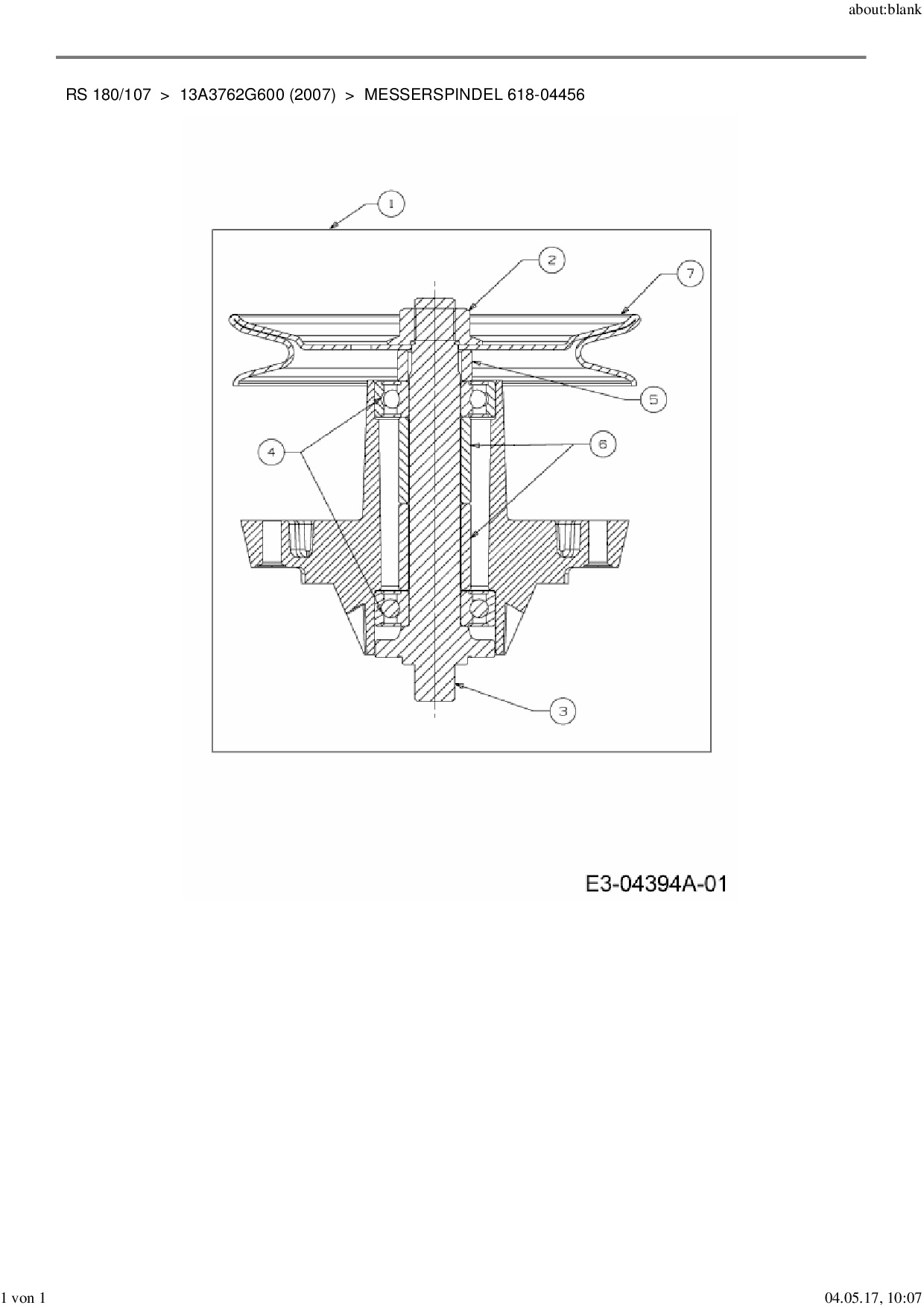 Ersatzteile für Rasentraktor MTD RS 180/107 aus der Zeichnung Messerspindel 618-04456: