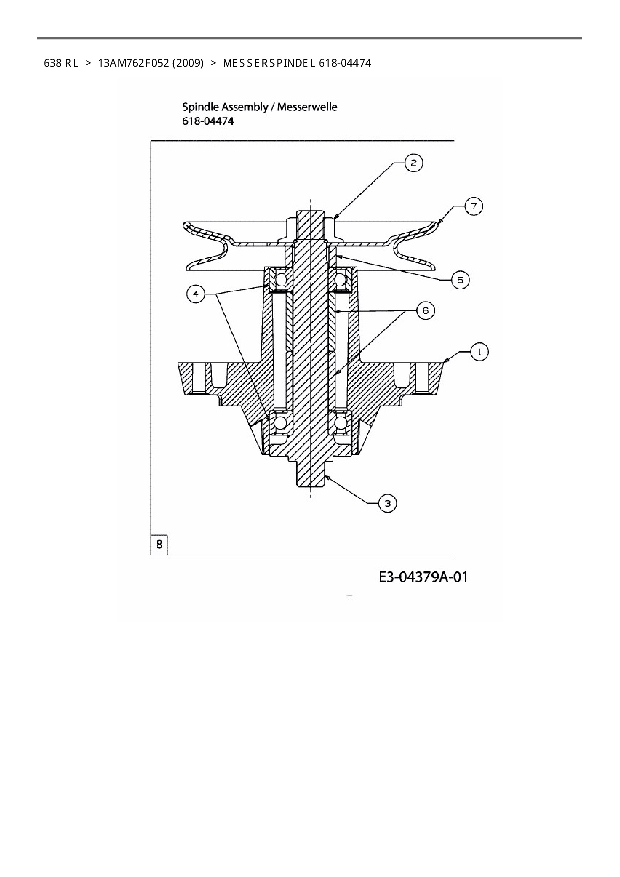 Ersatzteile für Rasentraktor MTD 638 RL aus der Zeichnung Messerspindel 618-04474:
