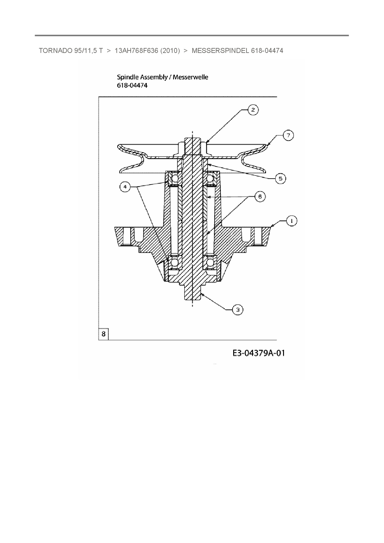 Download Ersatzteil-Zeichnung Oleo-Mac Tornado 95/11,5 T Zeichnung Messerspindel 618-04474 (PDF-Format)