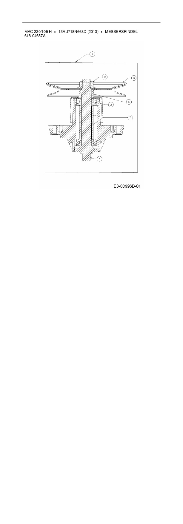 Ersatzteile für Rasentraktor Mac Allister Mac 220/105 H aus der Zeichnung Messerspindel 618-04657A: