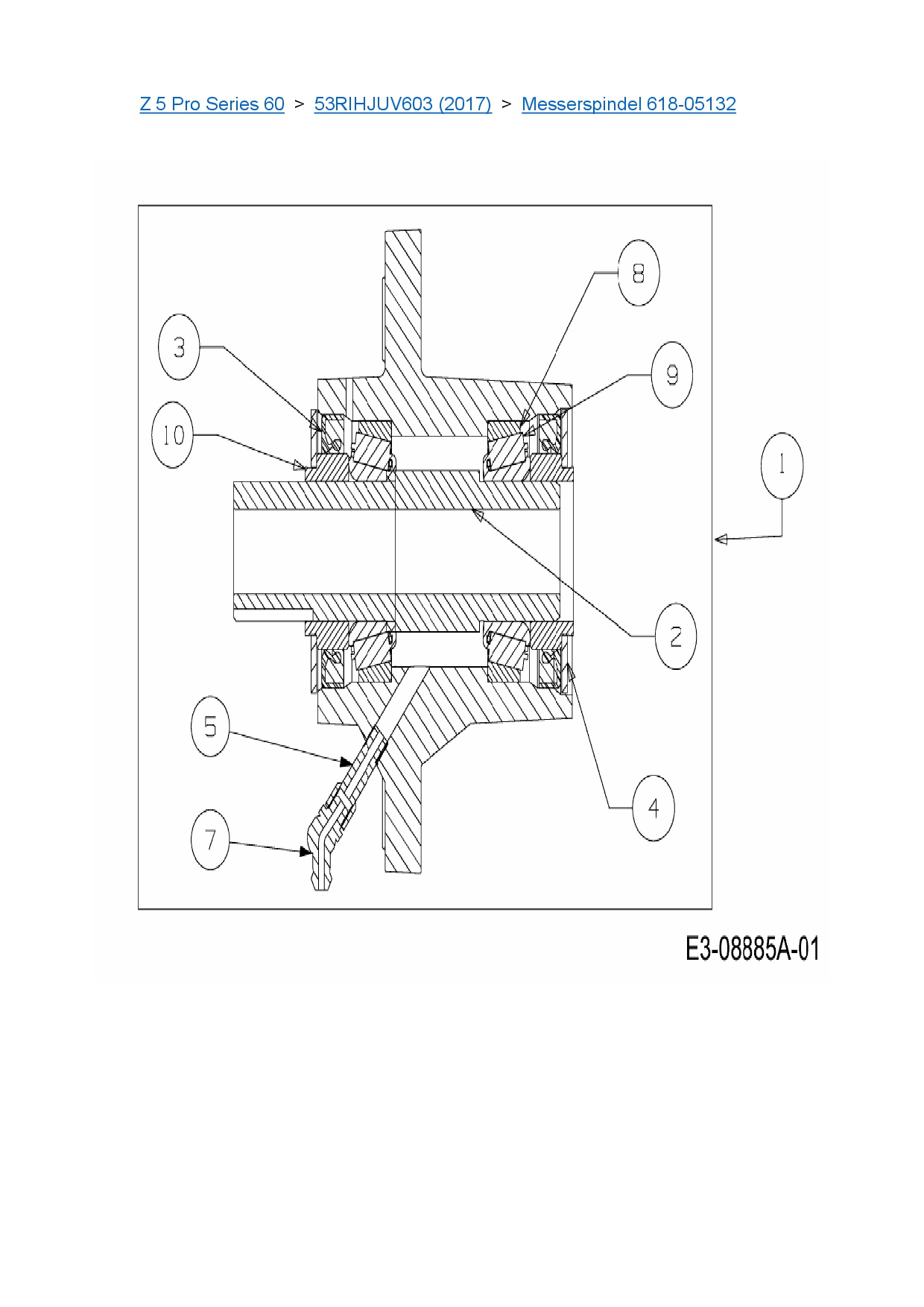 Ersatzteile für Zero Turn Cub Cadet Z 5 Pro Series 60 aus der Zeichnung Messerspindel 618-05132:
