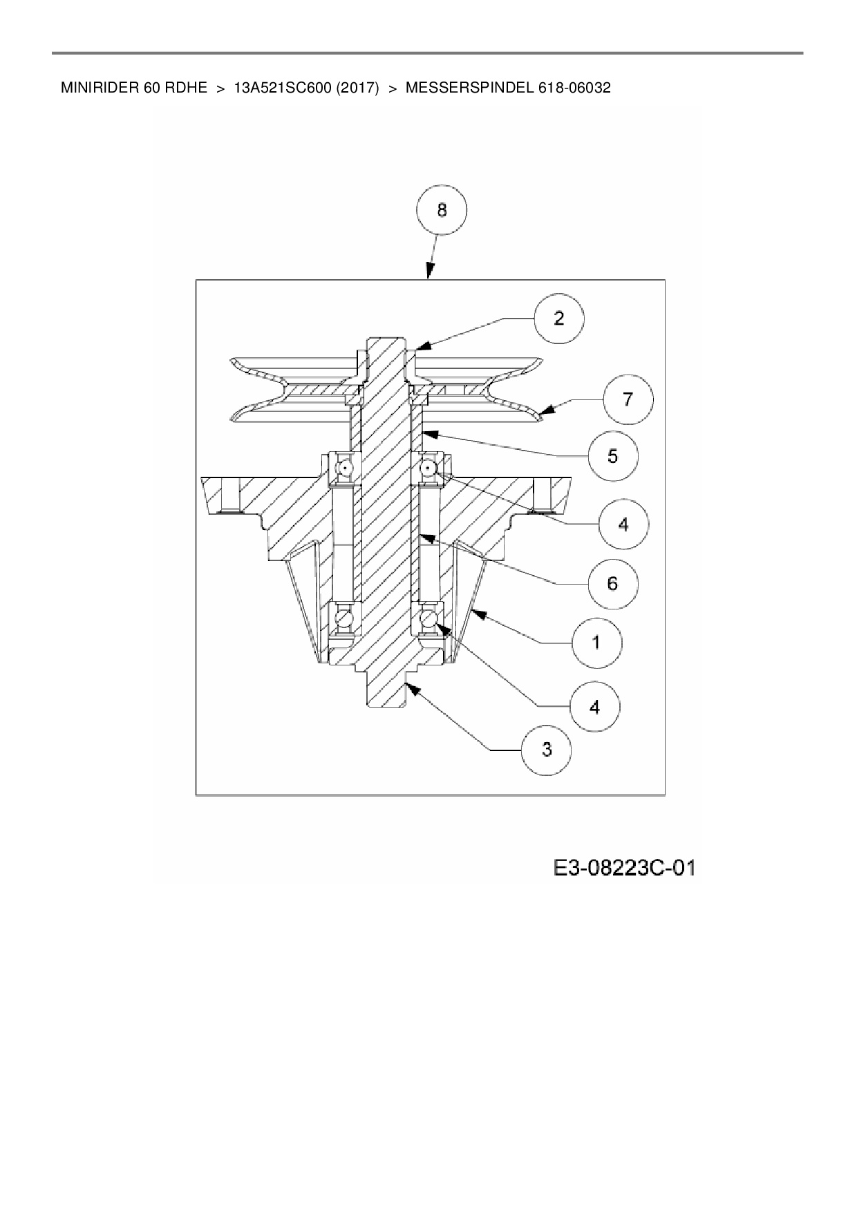 Ersatzteile für Rasentraktor MTD Minirider 60 RDHE aus der Zeichnung Messerspindel 618-06032: