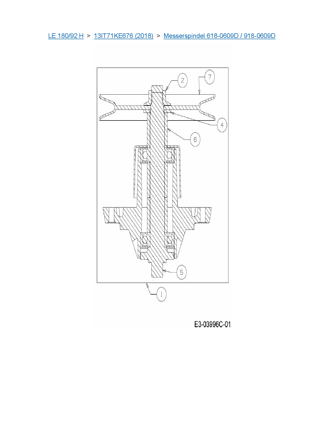 Download Ersatzteil-Zeichnung MTD LE 180/92 H Zeichnung Messerspindel 618-0609D / 918-0609D (PDF-Format)