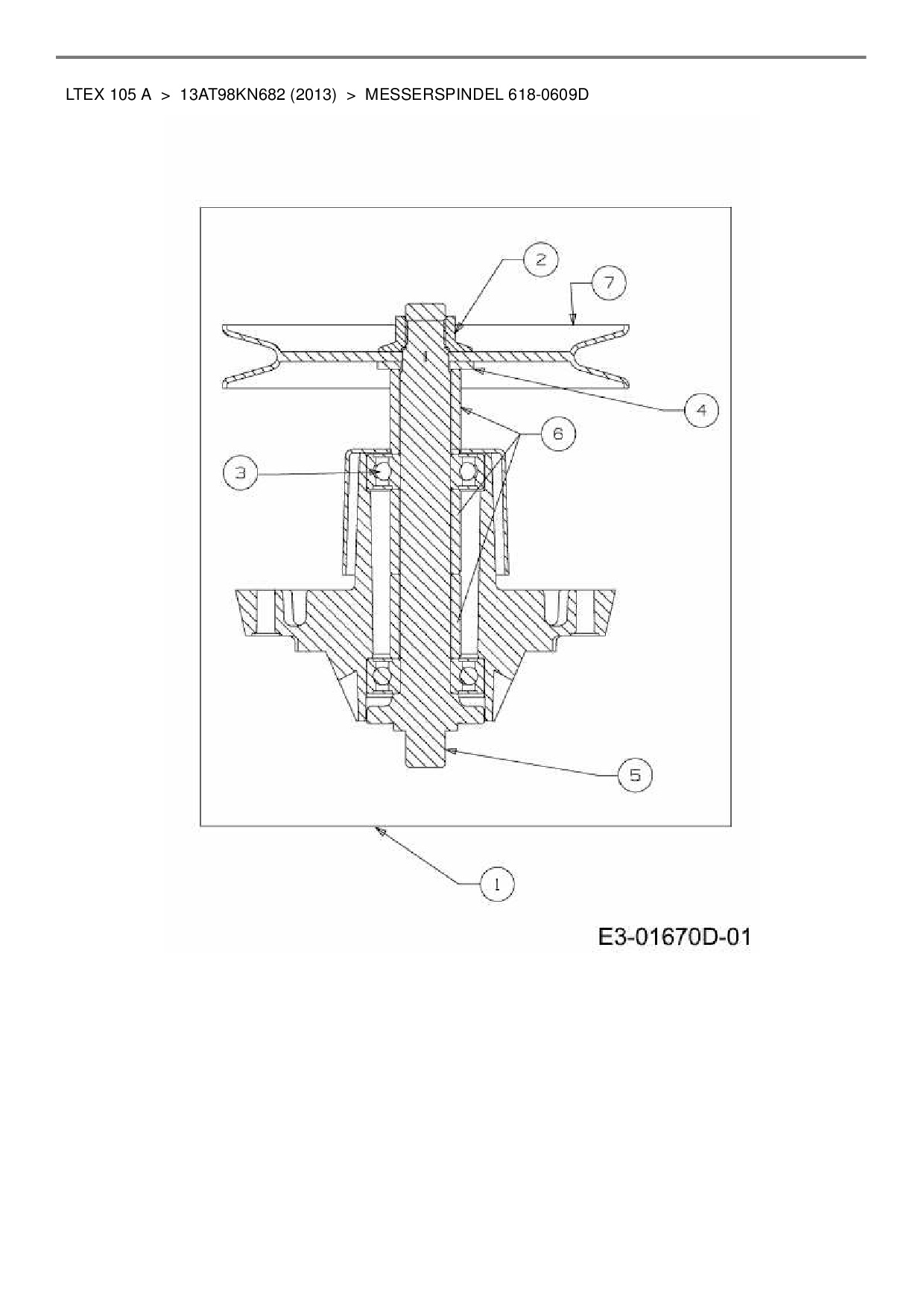 Ersatzteile für Rasentraktor MTD LTEX 105 A aus der Zeichnung Messerspindel 618-0609D: