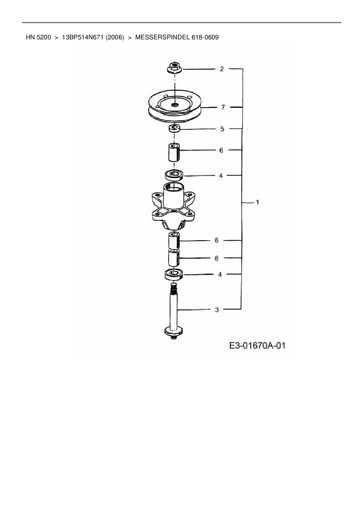 Ersatzteile für Rasentraktor Yard-Man HN 5200 aus der Zeichnung Messerspindel 618-0609: