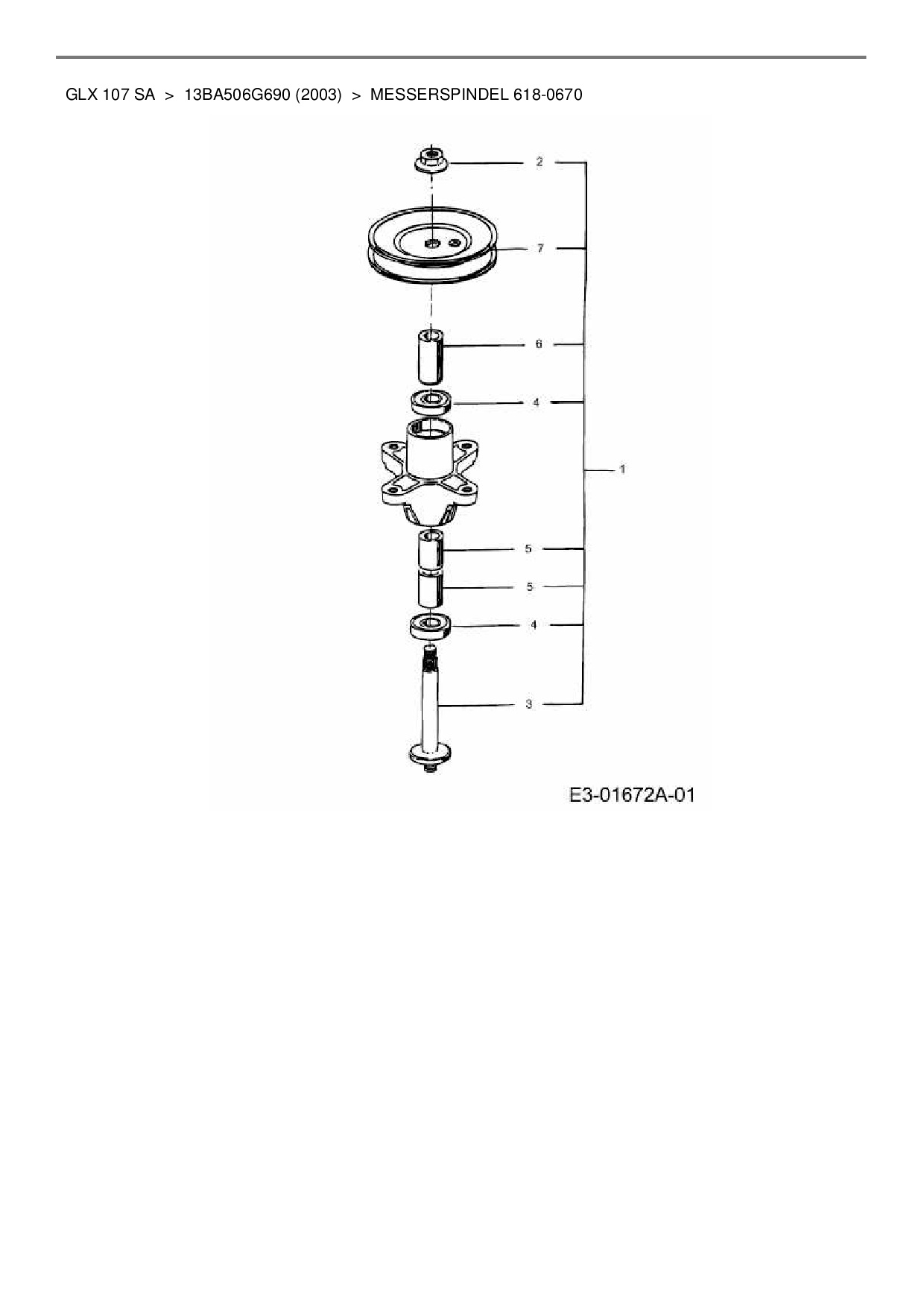 Ersatzteile für Rasentraktor Gutbrod GLX 107 SA aus der Zeichnung Messerspindel 618-0670: