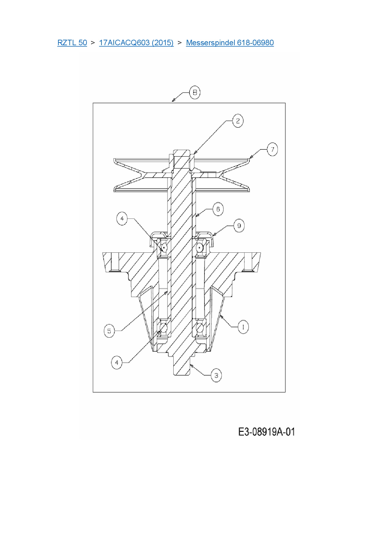 Ersatzteile für Zero Turn Cub Cadet RZTL 50 aus der Zeichnung Messerspindel 618-06980: