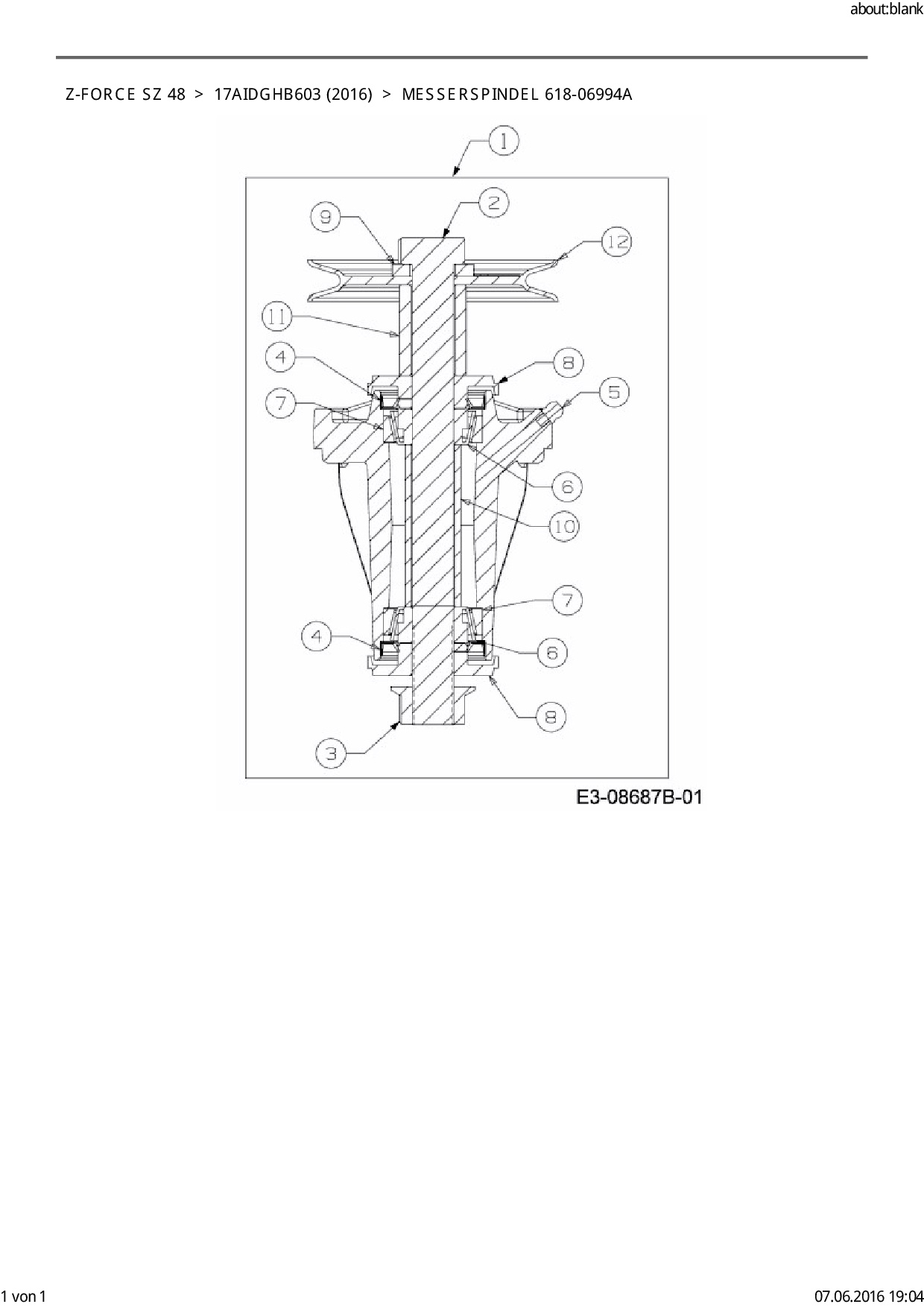 Ersatzteile für Zero Turn Cub Cadet Z-Force SZ 48 aus der Zeichnung Messerspindel 618-06994A: