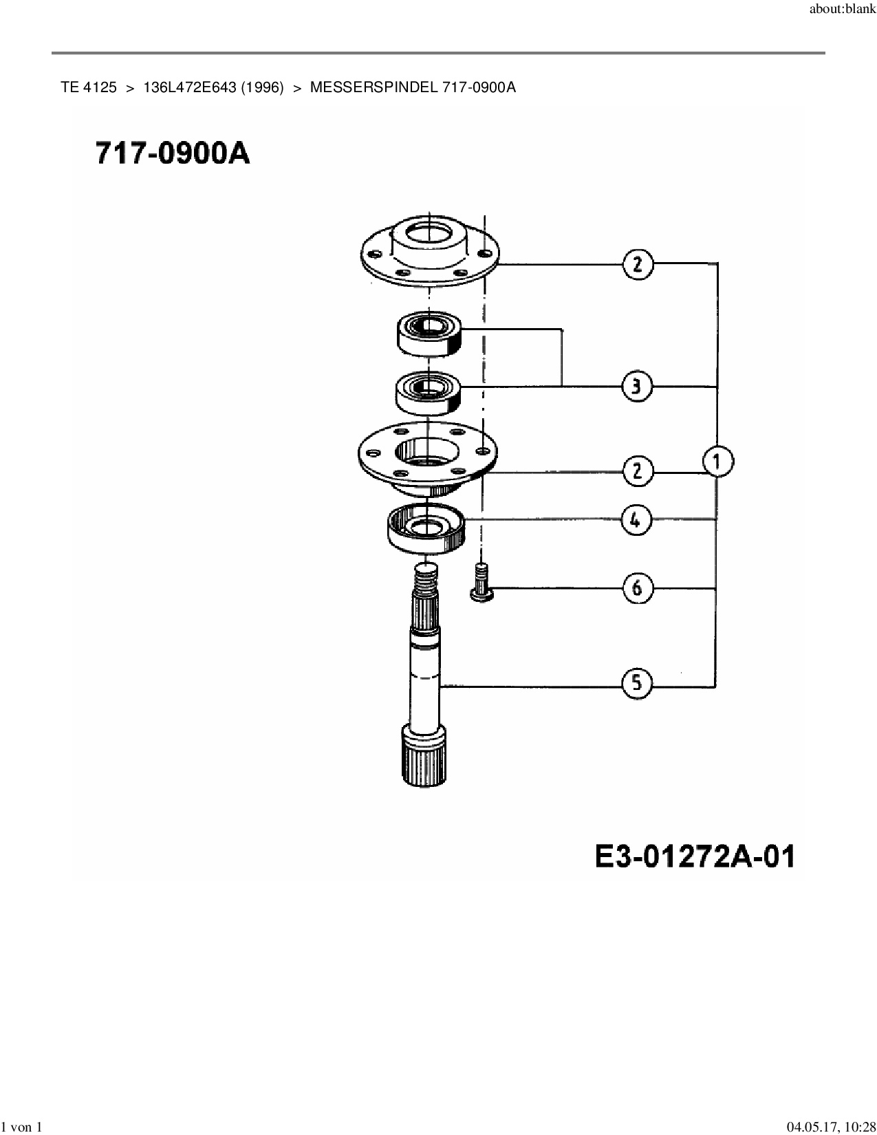 Ersatzteile für Rasentraktor Yard-Man TE 4125 aus der Zeichnung Messerspindel 717-0900A: