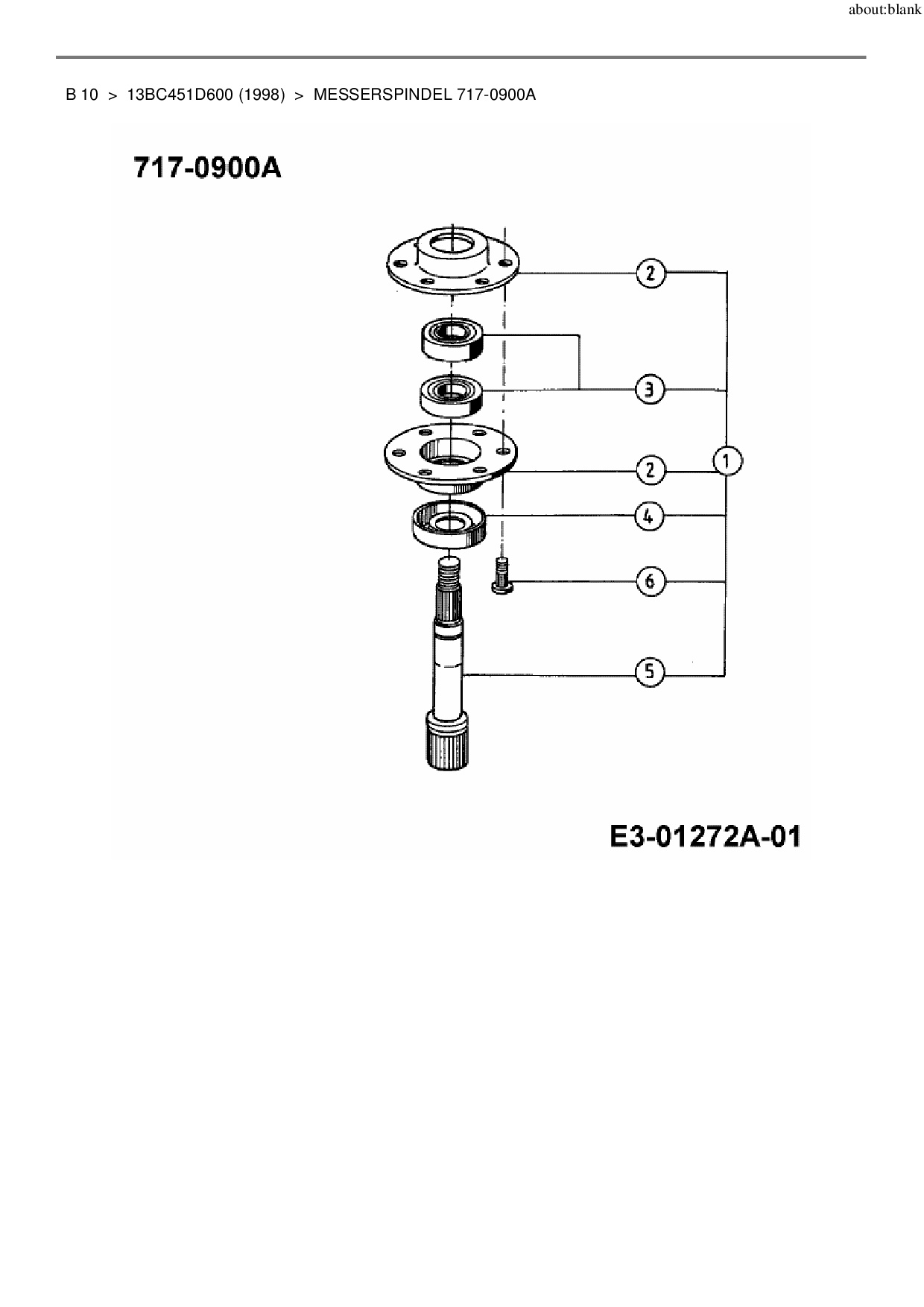 Ersatzteile für Rasentraktor MTD B 10 aus der Zeichnung Messerspindel 717-0900A:
