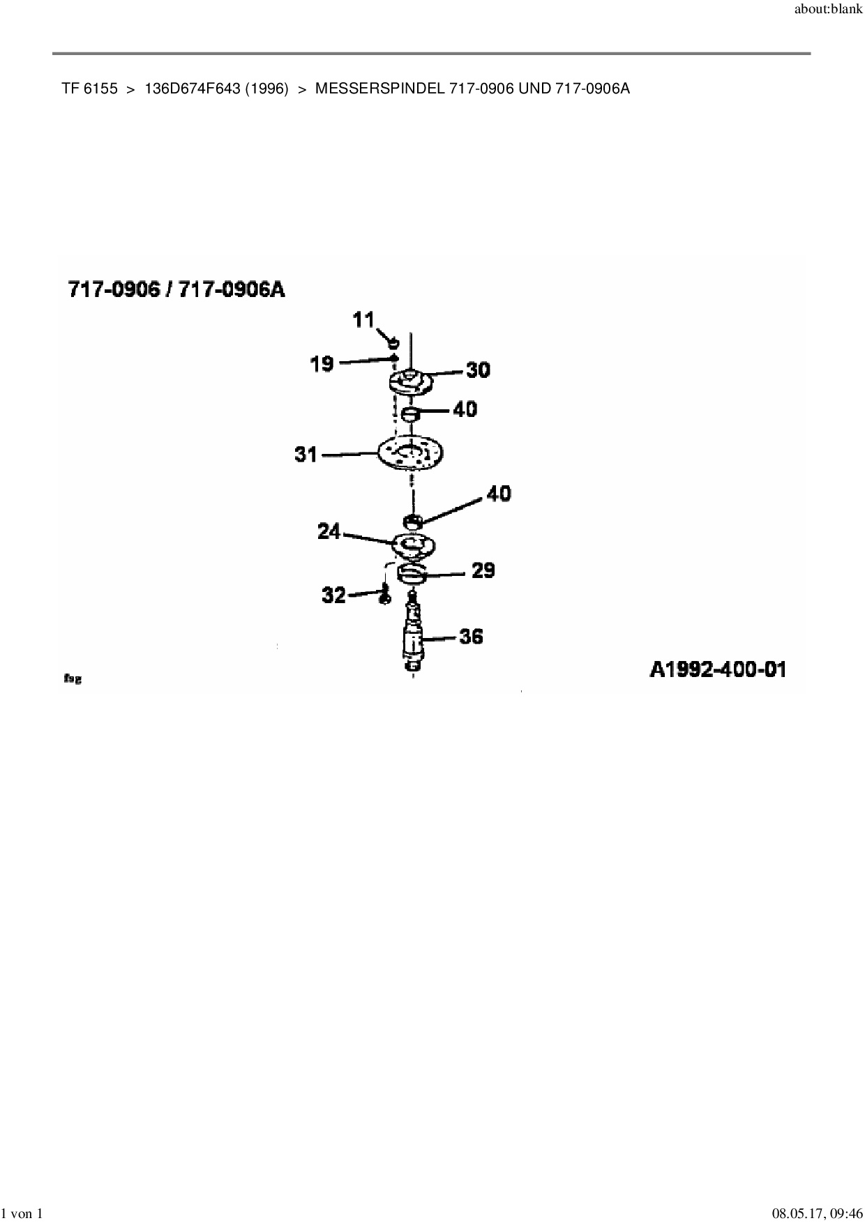 Ersatzteile für Rasentraktor Yard-Man TF 6155 aus der Zeichnung Messerspindel 717-0906 und 717-0906A: