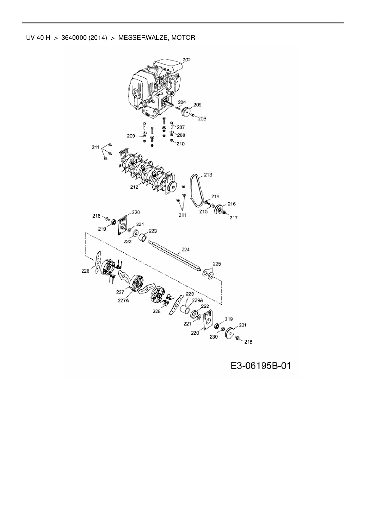 Ersatzteile für Motorvertikutierer Wolf-Garten UV 40 H aus der Zeichnung Messerwalze, Motor: