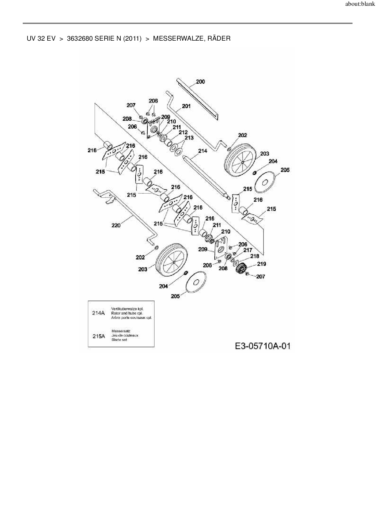 Zeichnung für Wolf-Garten Elektrovertikutierer UV 32 EV mit der Geräte-Artikelnr. 3632680 Serie N ab Baujahr 2011: