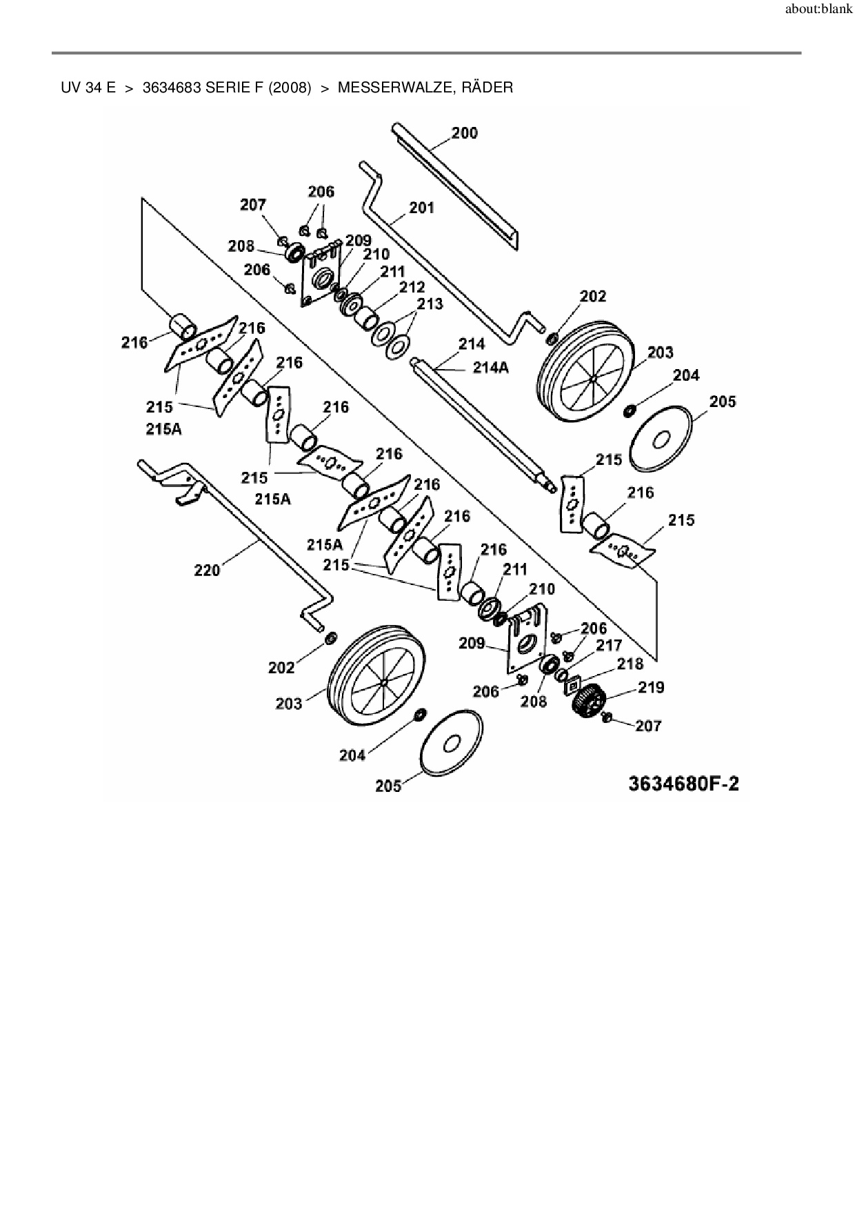 Ersatzteile für Elektrovertikutierer Wolf-Garten UV 34 E aus der Zeichnung Messerwalze, Räder: