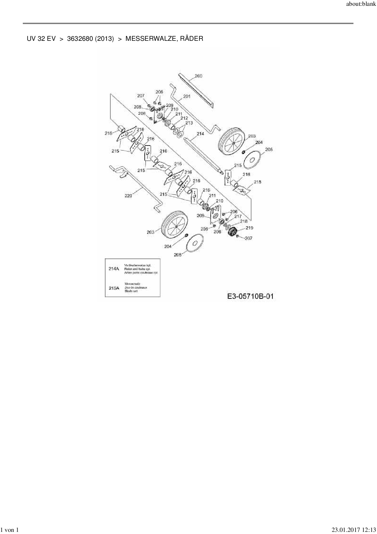 Download Ersatzteil-Zeichnung Wolf-Garten UV 32 EV Zeichnung Messerwalze, Räder (PDF-Format)
