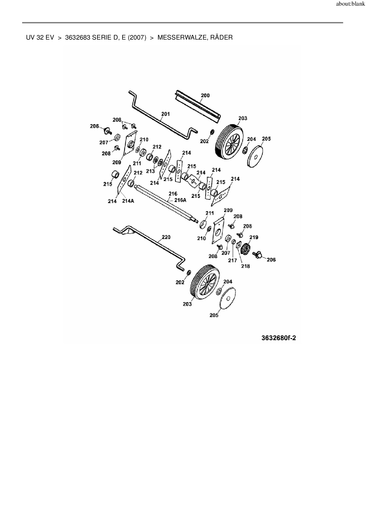 Download Ersatzteil-Zeichnung Wolf-Garten UV 32 EV Zeichnung Messerwalze, Räder (PDF-Format)