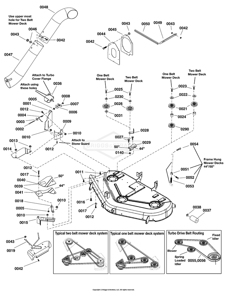 Zeichnung Snapper 1696450A-01 - Turbo, 44" & 50" Mower Deck w/Steel or Aluminum Spindles - Zeichnungsgruppe Montage Alu: