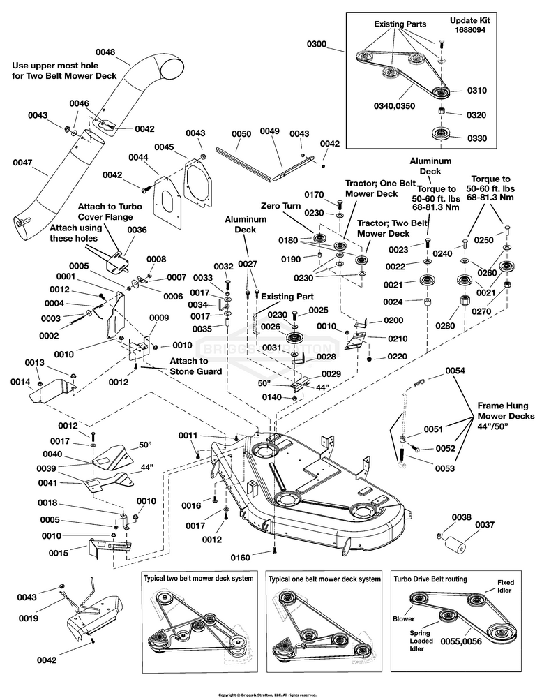 Zeichnung Snapper 1696450-01 - Turbo, 44" & 50" Mower Deck w/Steel or Aluminum Spindles - Zeichnungsgruppe Montage: