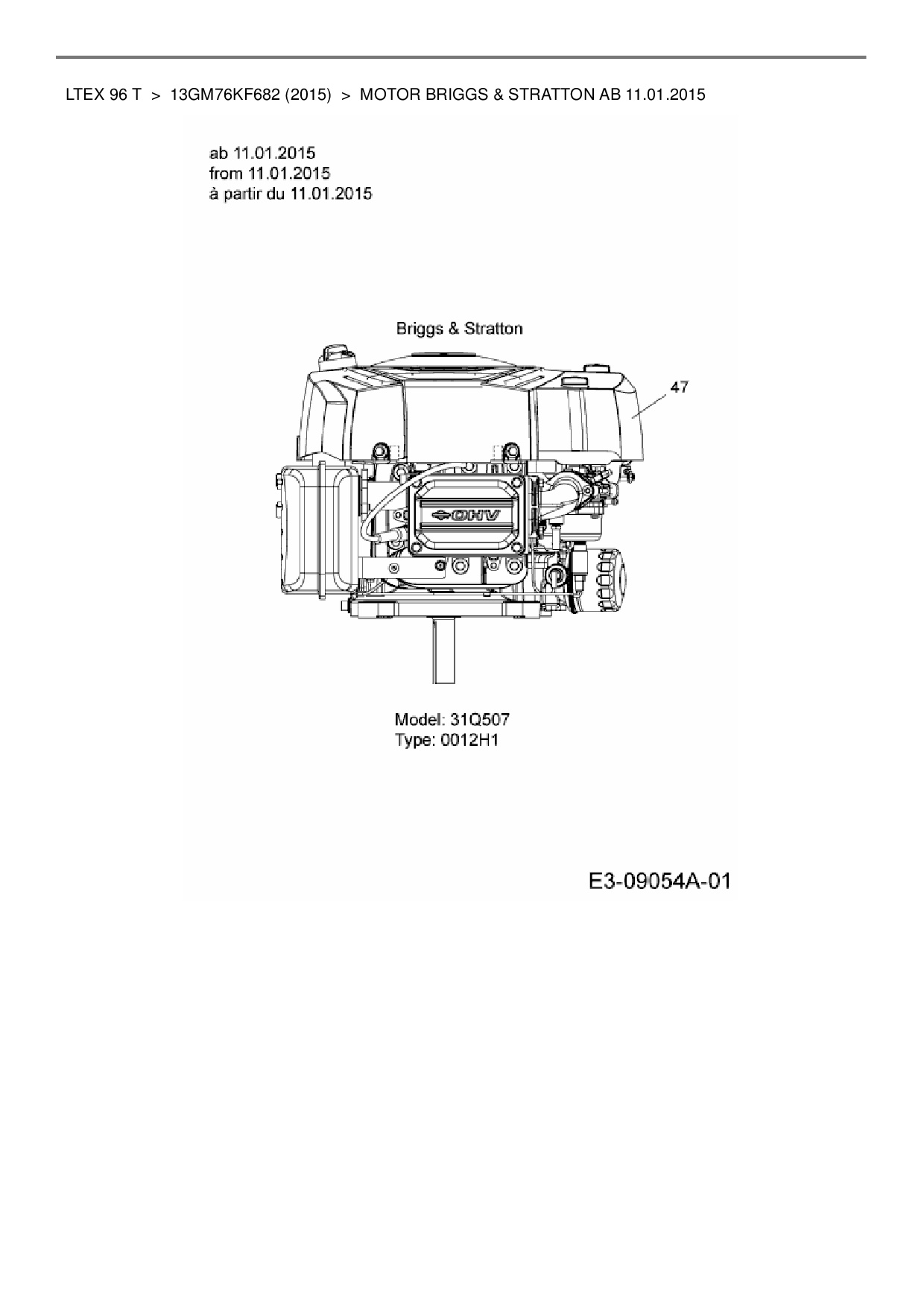 Ersatzteile für Rasentraktor MTD LTEX 96 T aus der Zeichnung Motor Briggs & Stratton ab 11.01.2015: