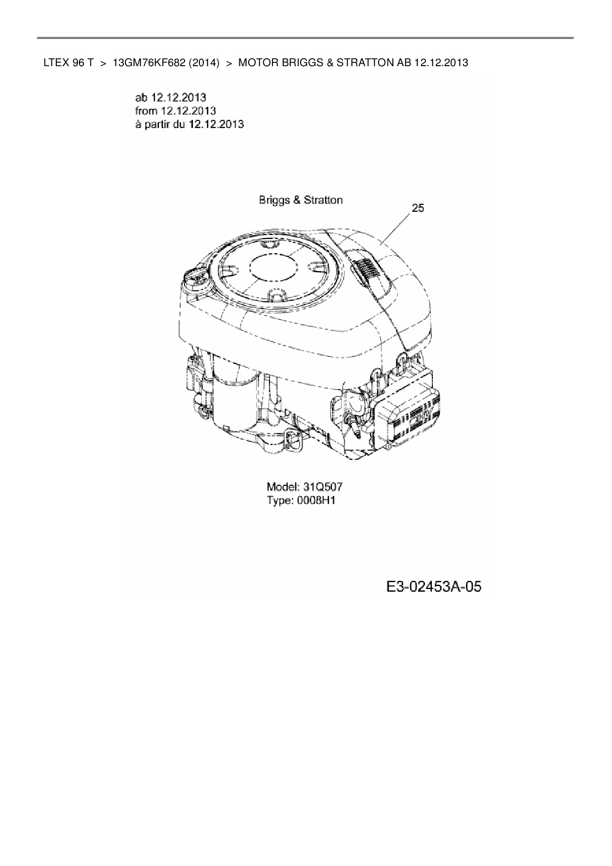 Ersatzteile für Rasentraktor MTD LTEX 96 T aus der Zeichnung Motor Briggs & Stratton ab 12.12.2013: