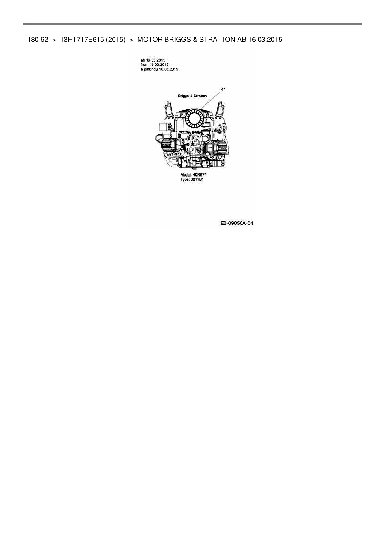 Ersatzteile für Rasentraktor Black Edition 180-92 aus der Zeichnung Motor Briggs & Stratton ab 16.03.2015:
