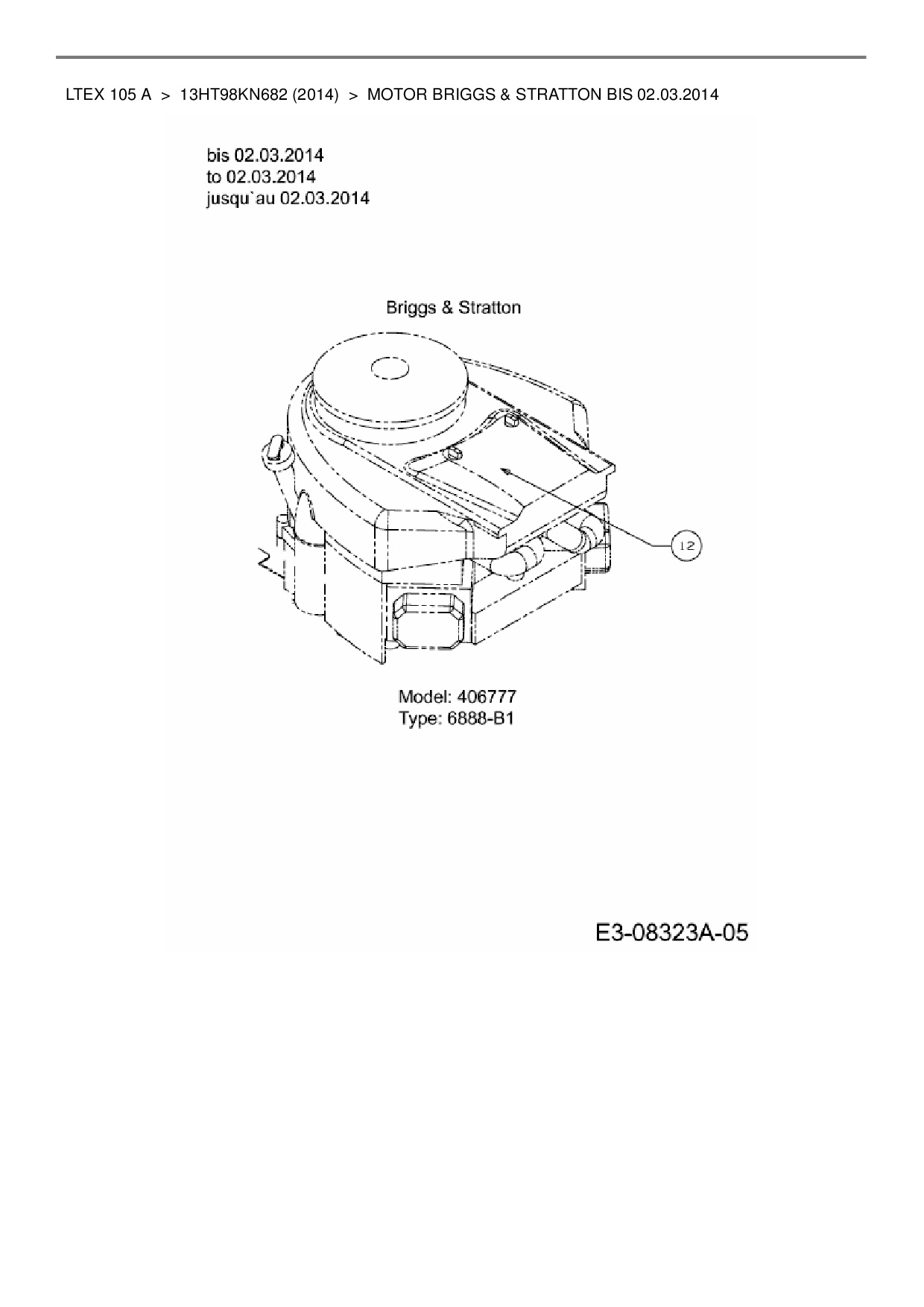 Ersatzteile für Rasentraktor MTD LTEX 105 A aus der Zeichnung Motor Briggs & Stratton bis 02.03.2014: