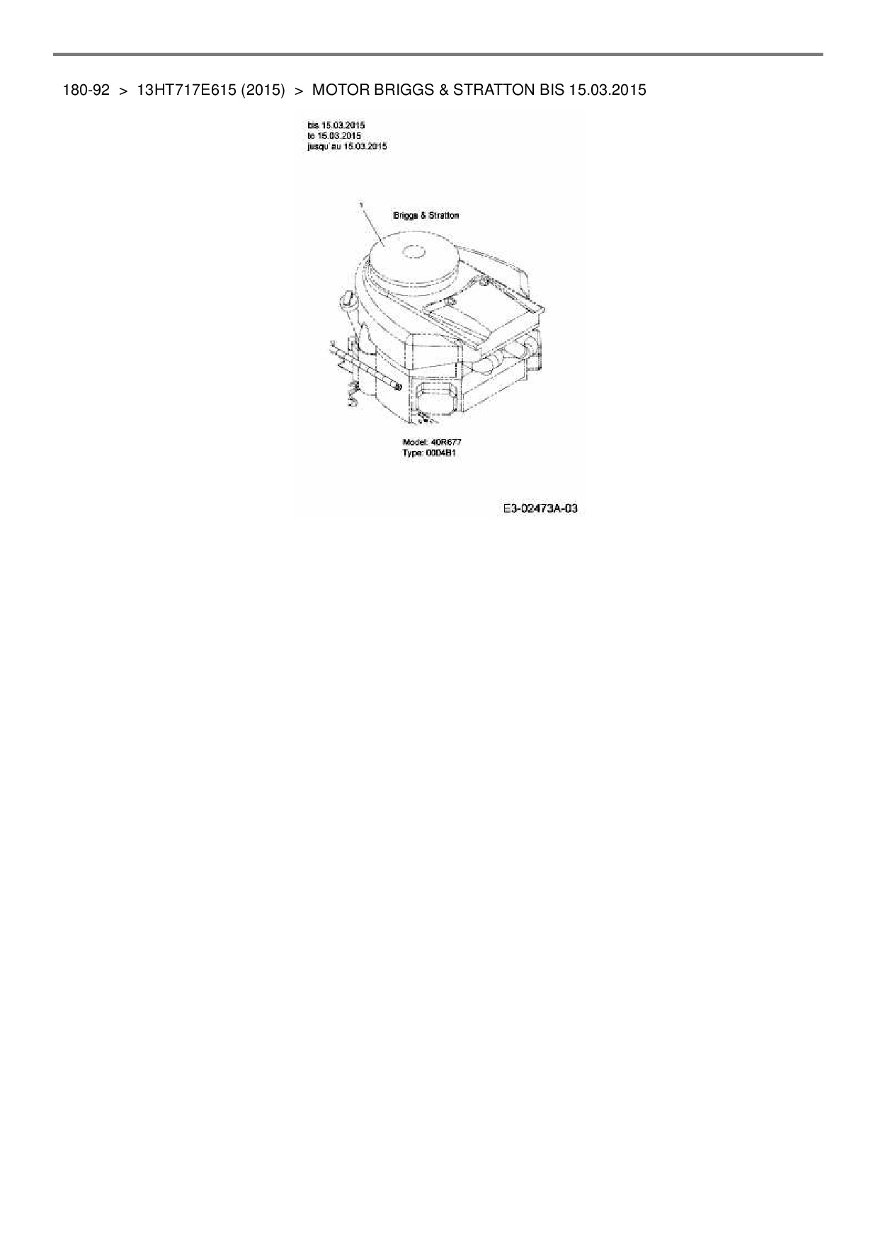 Ersatzteile für Rasentraktor Black Edition 180-92 aus der Zeichnung Motor Briggs & Stratton bis 15.03.2015:
