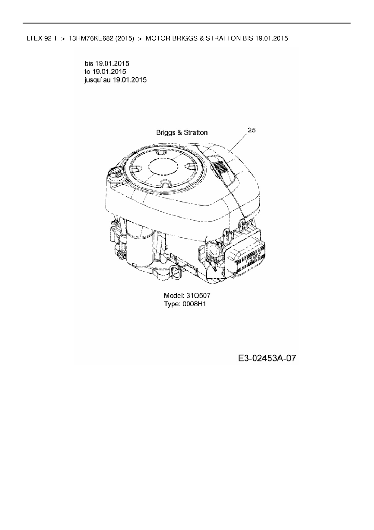 Ersatzteile für Rasentraktor MTD LTEX 92 T aus der Zeichnung Motor Briggs & Stratton bis 19.01.2015:
