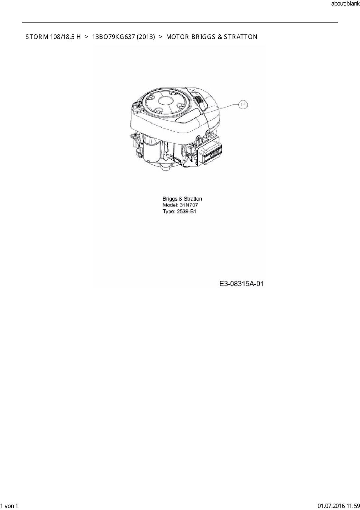 Ersatzteile für Rasentraktor EFCO Storm 108/18,5 H aus der Zeichnung Motor Briggs & Stratton: