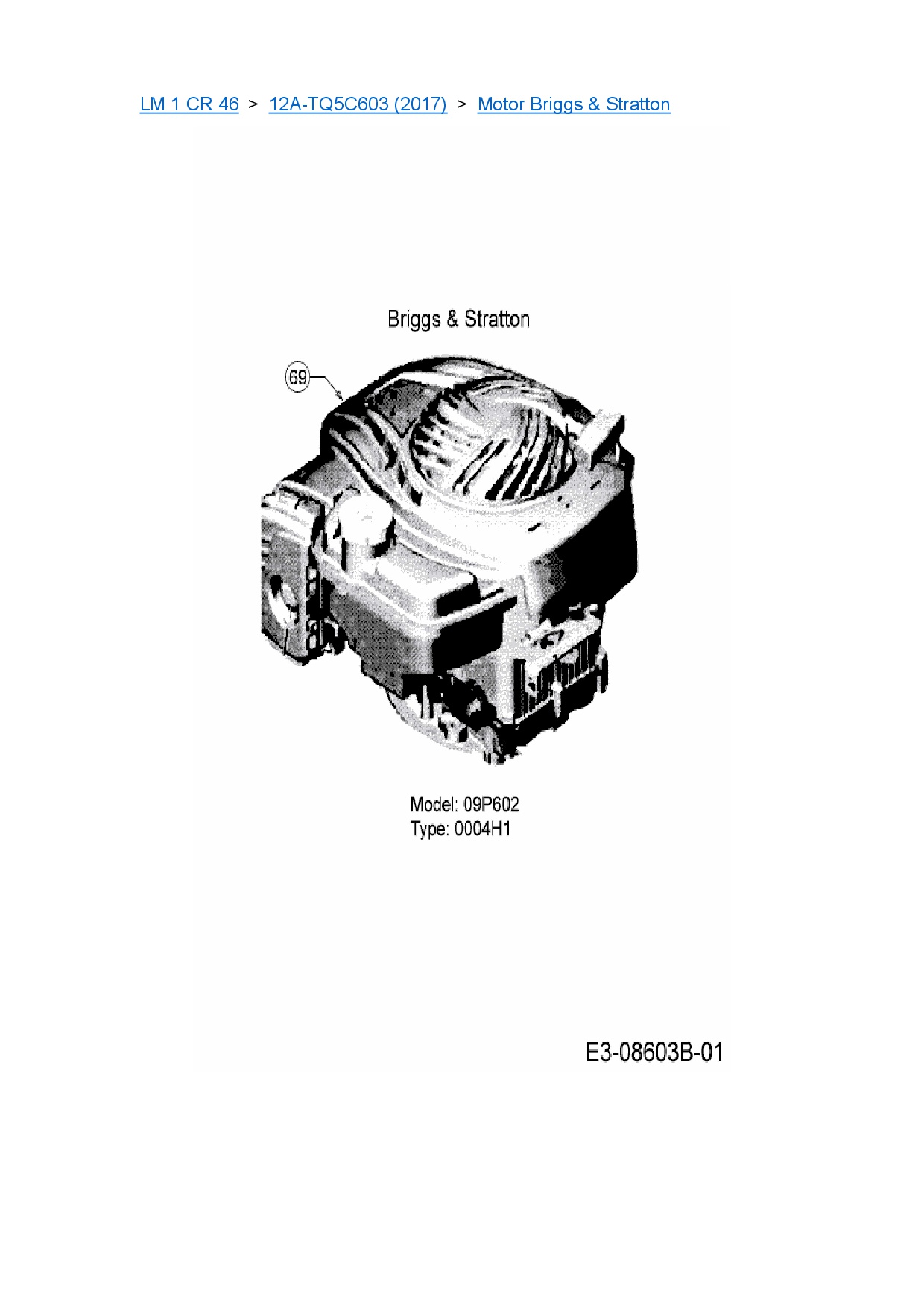Ersatzteile für Motormäher mit Antrieb Cub Cadet LM 1 CR 46 aus der Zeichnung Motor Briggs & Stratton:
