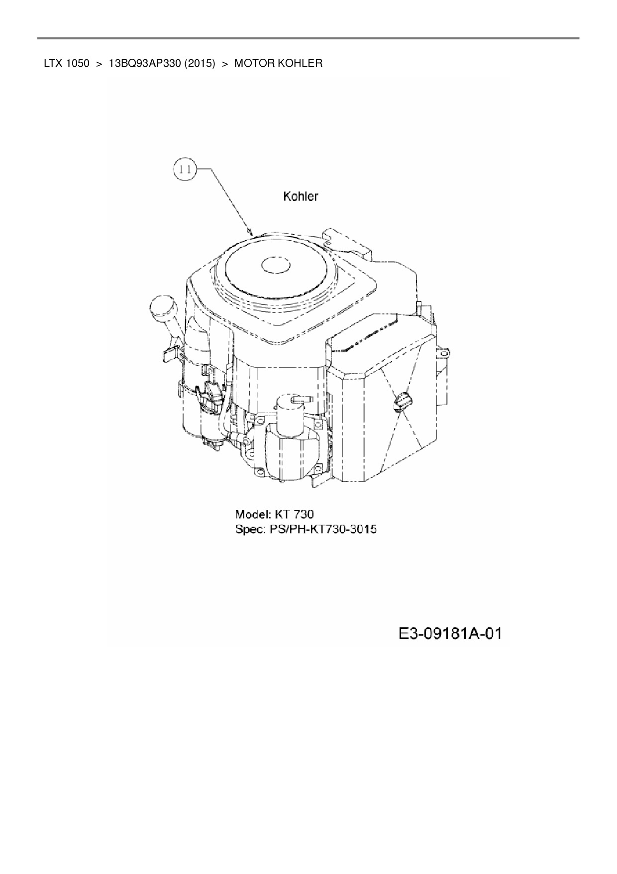 Ersatzteile für Rasentraktor Cub Cadet LTX 1050 aus der Zeichnung Motor Kohler:
