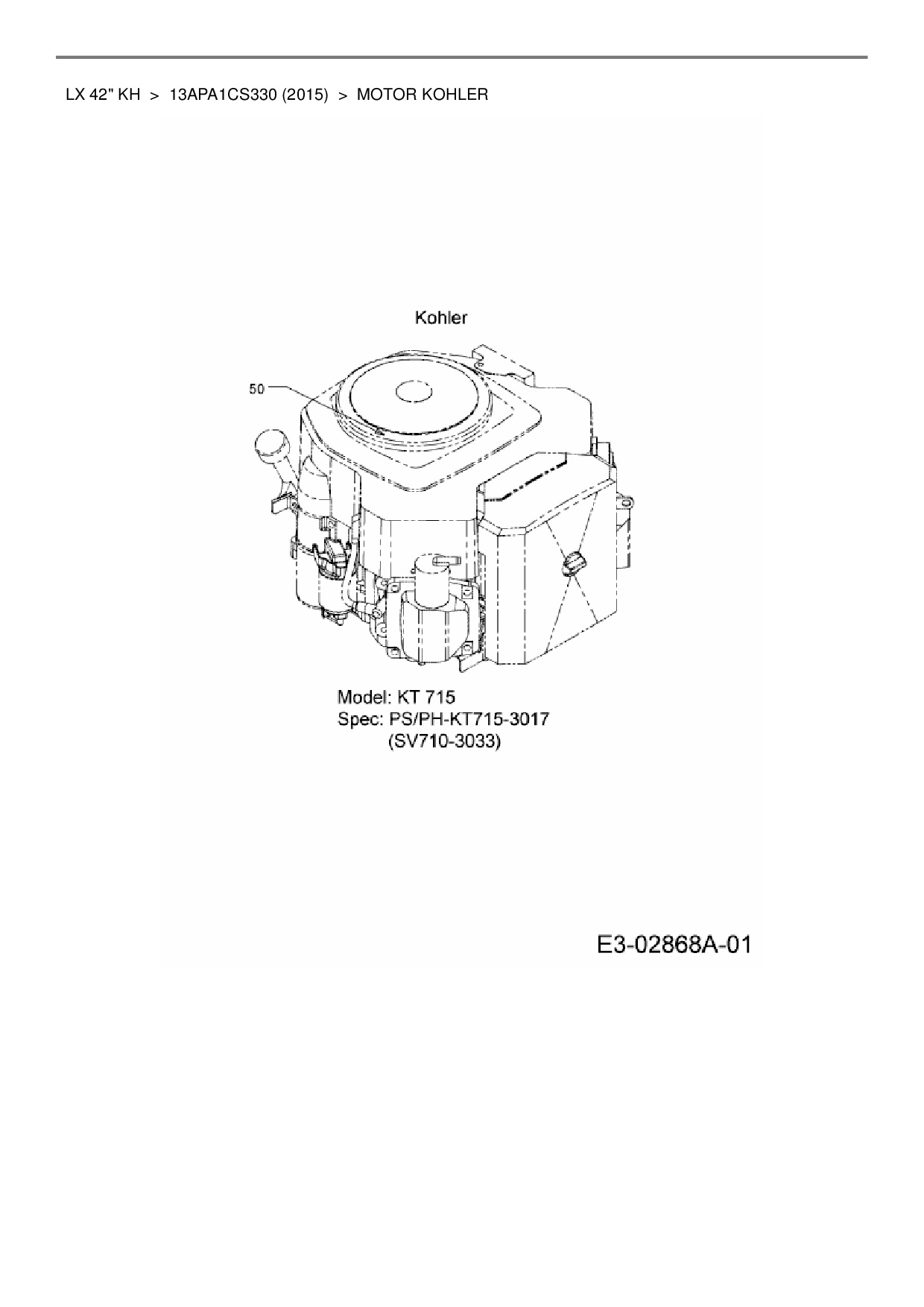 Ersatzteile für Rasentraktor Cub Cadet LX 42" KH aus der Zeichnung Motor Kohler: