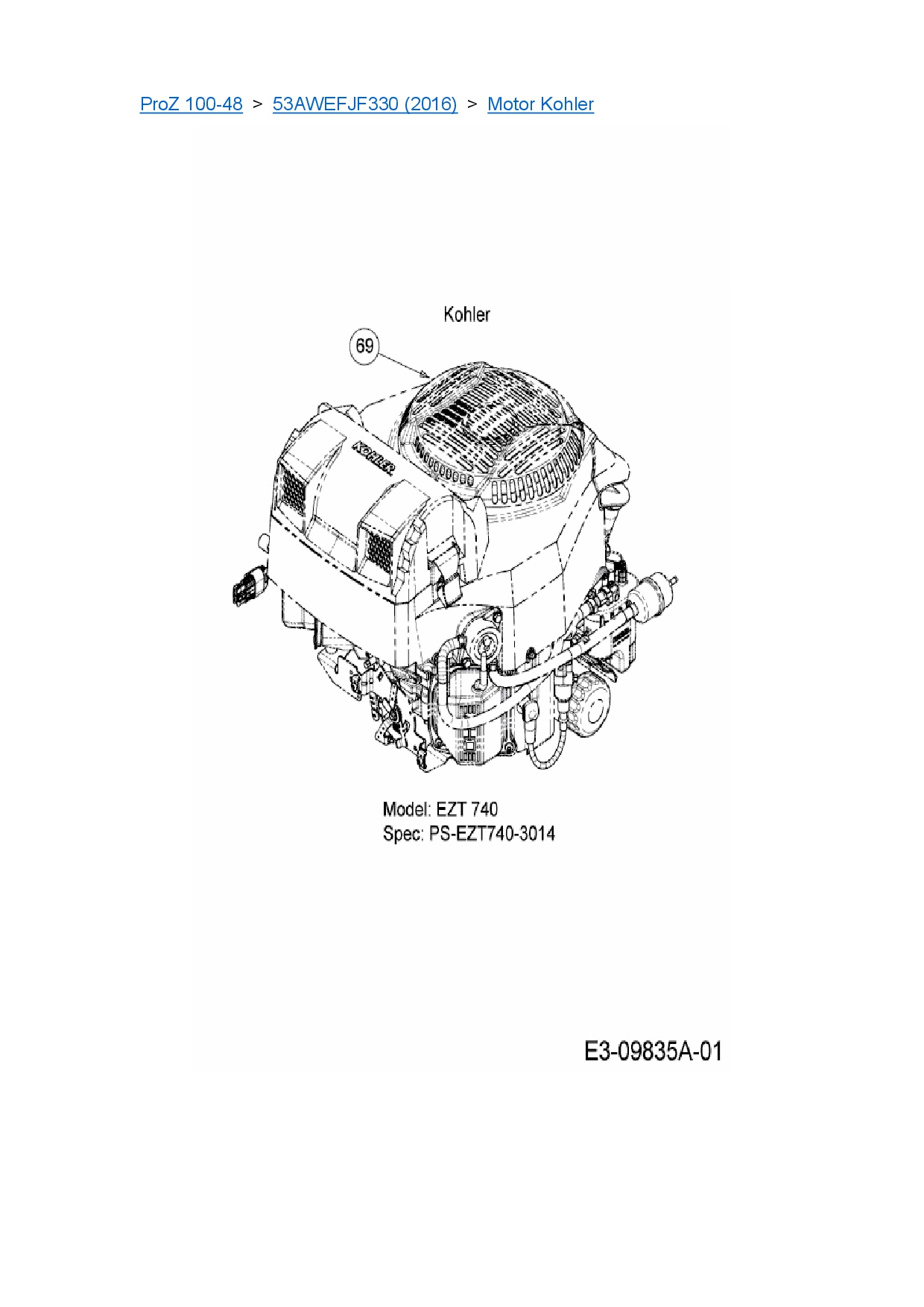 Ersatzteile für Zero Turn Cub Cadet ProZ 100-48 aus der Zeichnung Motor Kohler: