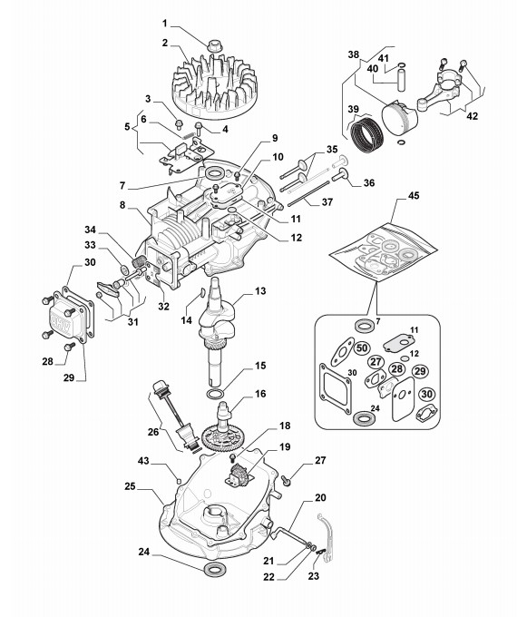 Hier finden Sie alle Ersatzteile von Stiga Benzin-Rasenmäher ab 2019 Combi 48 SQ (Geräte Nr 2L0486848/ST1) aus dem Zeichnungsblatt Motor - Kolben, Motorwelle: