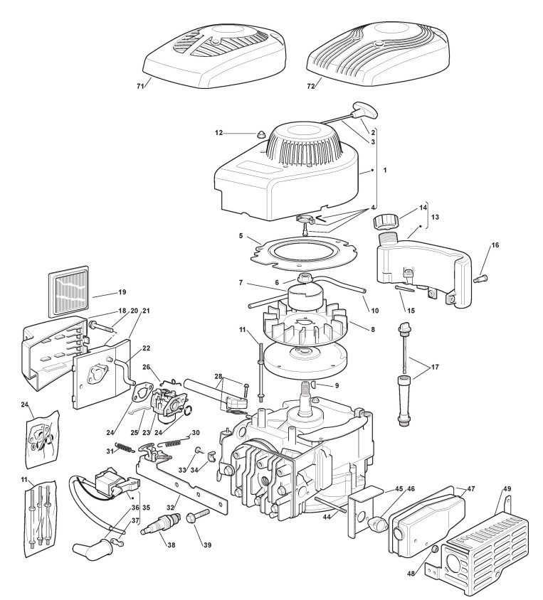 Hier finden Sie alle Ersatzteile von Castelgarden TELLUS TELLUS 360 G (213600043/08) ab 2012 aus der Zeichnung Motor - ST. 150cc: