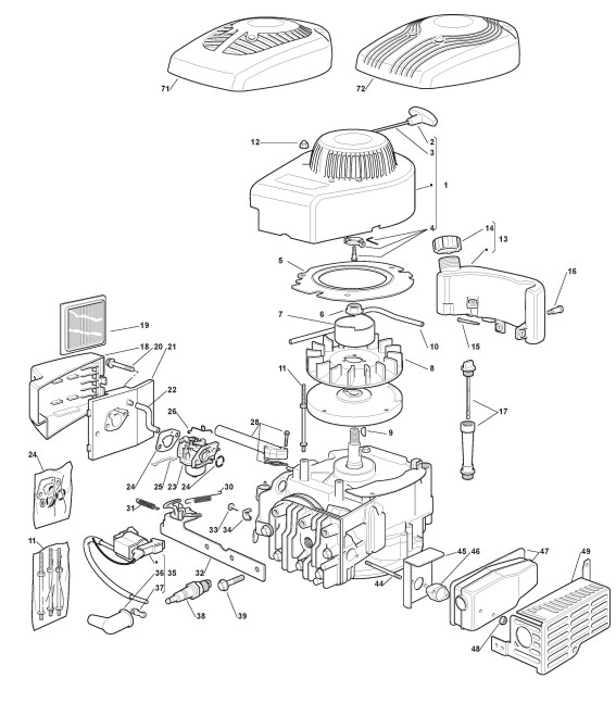 Hier finden Sie alle Ersatzteile von Castelgarden TELLUS TELLUS 40 G (214000043/08) ab 2010 aus der Zeichnung Motor - ST. 150cc: